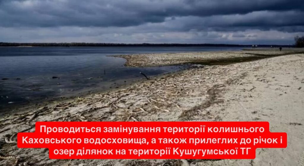 Поліцейські офіцери Кушугумської громади інформують: на території колишнього Каховського водосховища, а також у прибережних зонах річок і озер тривають роботи із замінування.