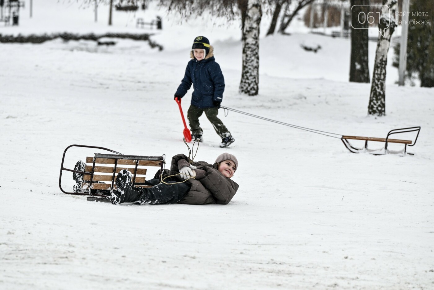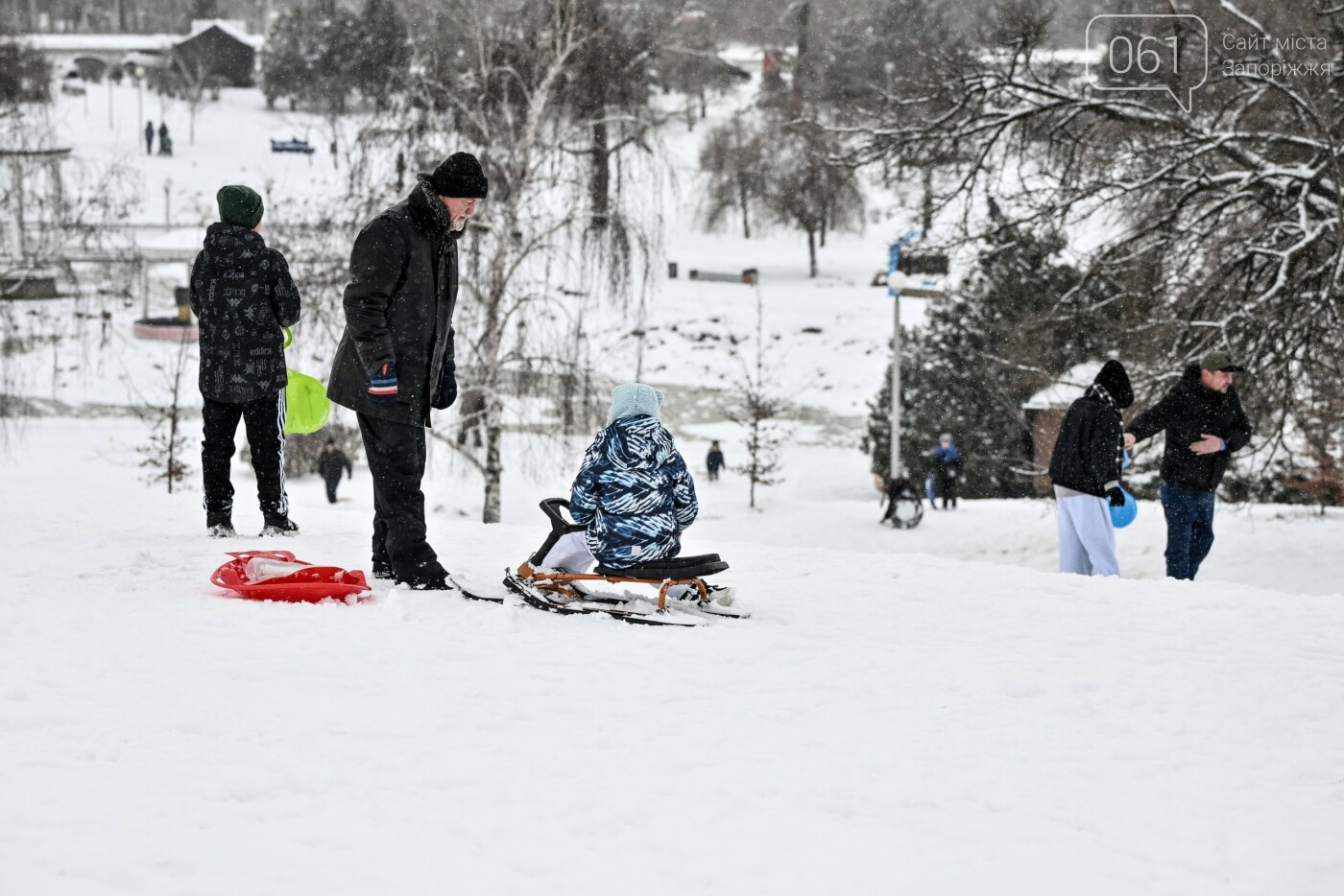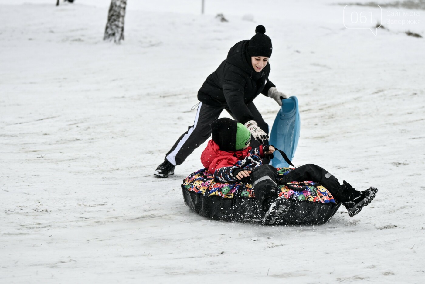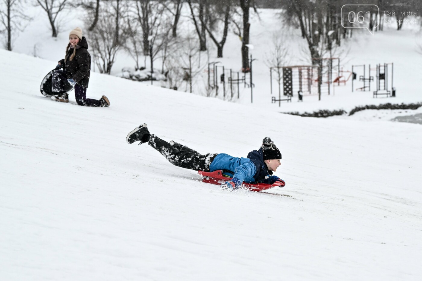 Сніжна та морозна погода в останні дні грудня подарувала запоріжцям можливість побавитися в сніжки, зліпити сніговиків та покататися на санчатах, льодянках і навіть кругах.