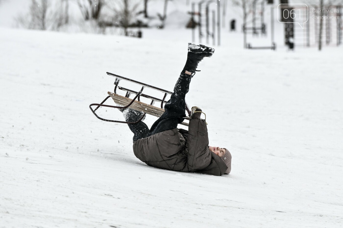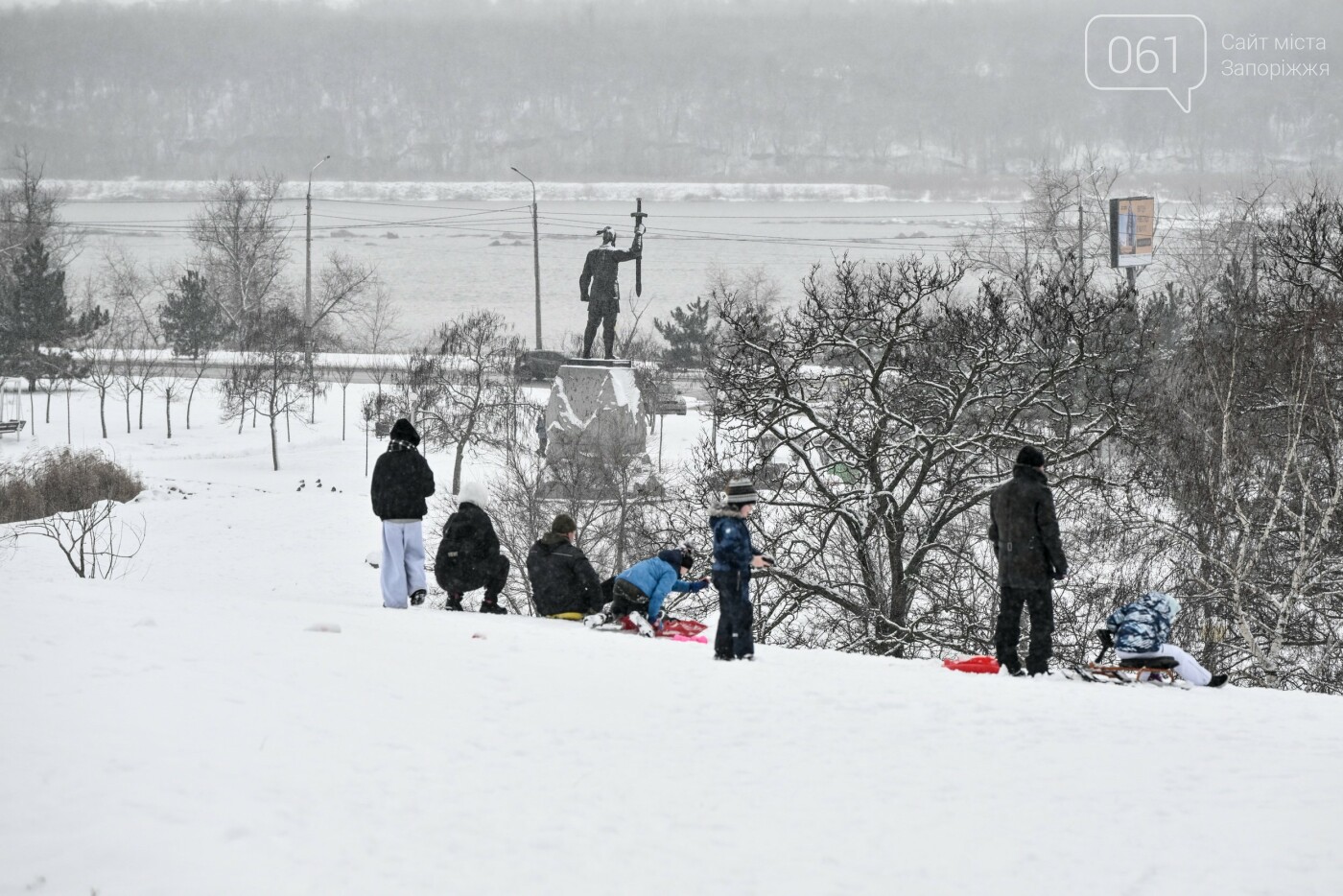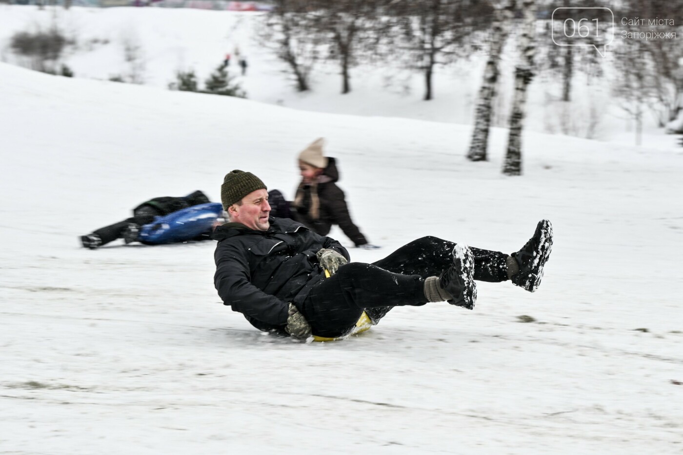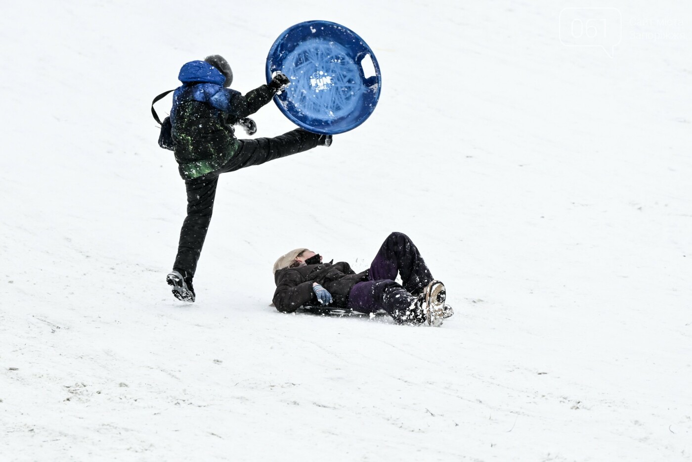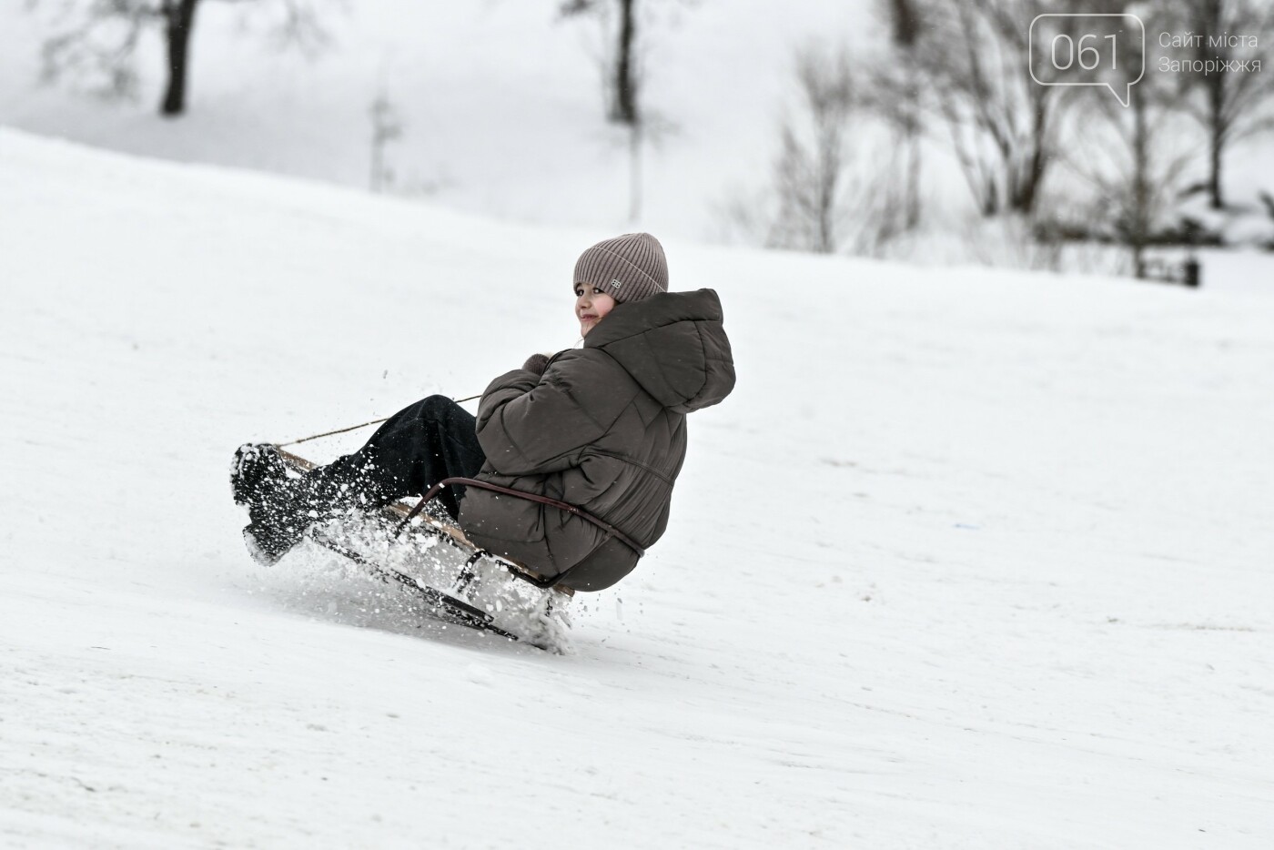 Сніжна та морозна погода в останні дні грудня подарувала запоріжцям можливість побавитися в сніжки, зліпити сніговиків та покататися на санчатах, льодянках і навіть кругах.
