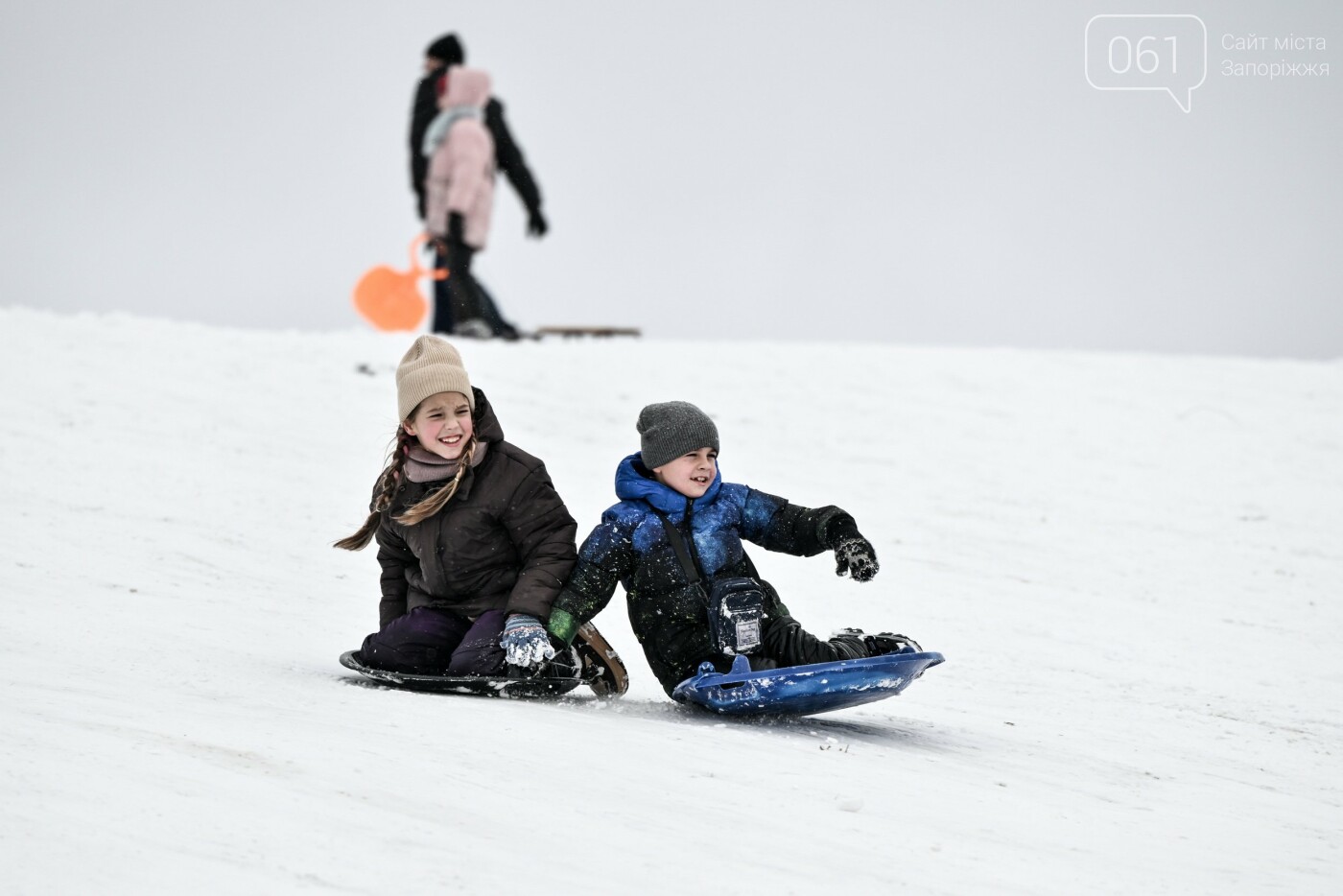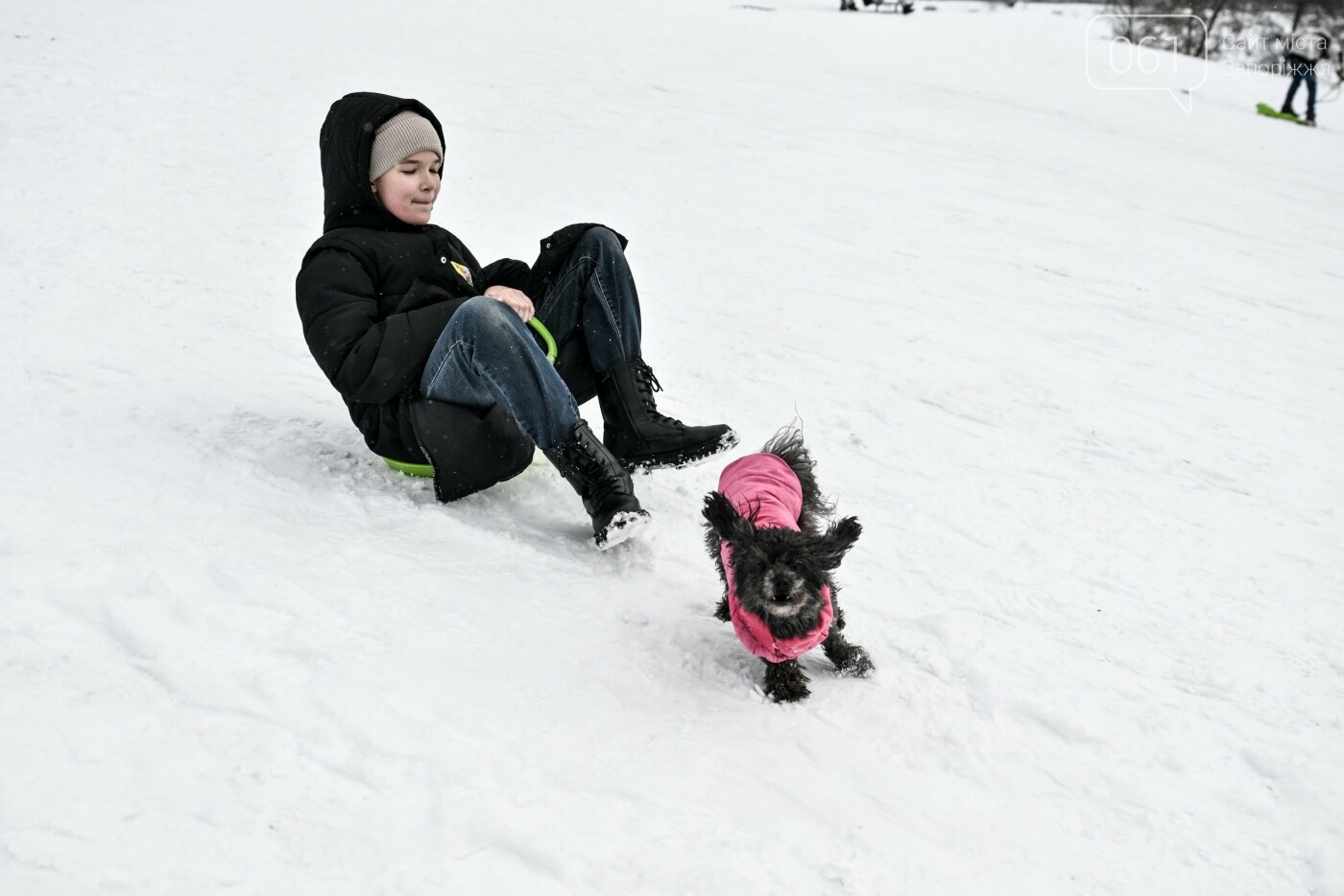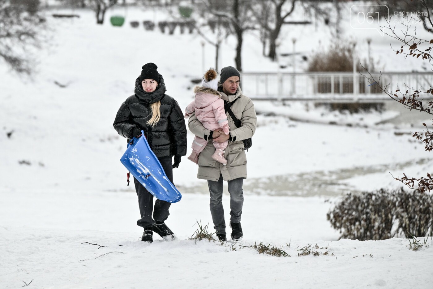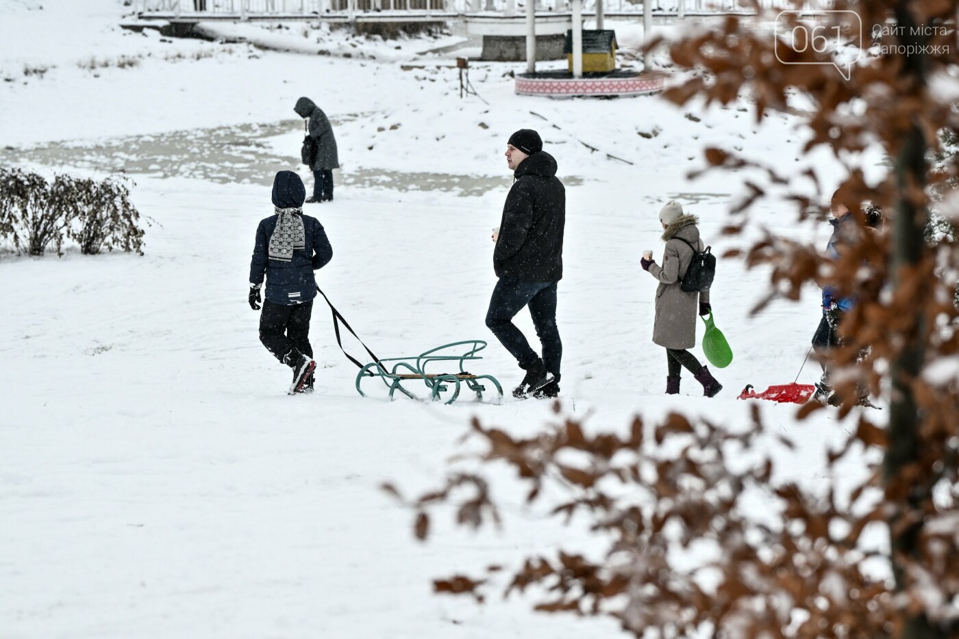 Сніжна та морозна погода в останні дні грудня подарувала запоріжцям можливість побавитися в сніжки, зліпити сніговиків та покататися на санчатах, льодянках і навіть кругах.