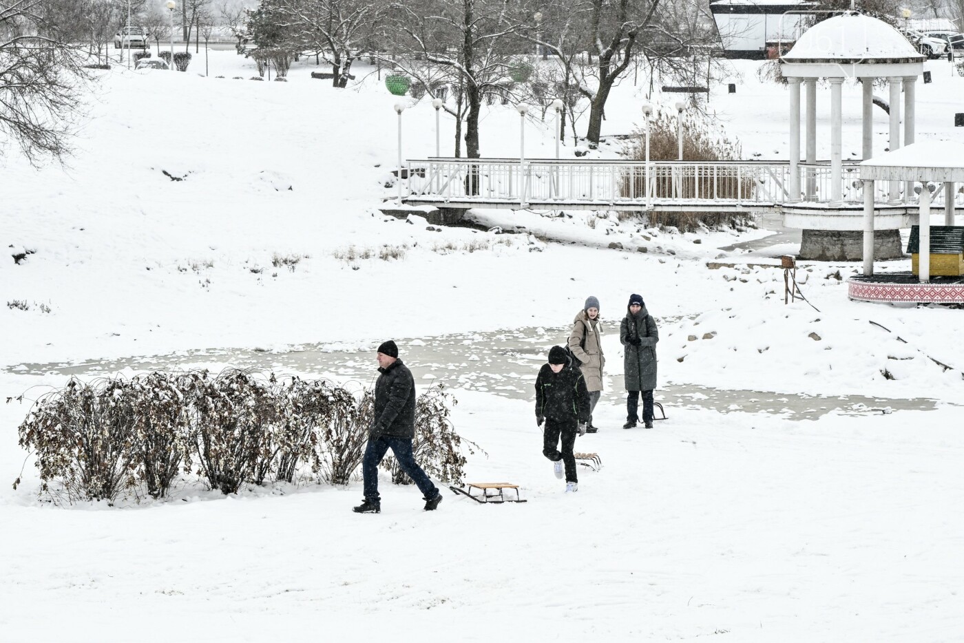 Пагорби, що поблизу з каскадом фонтанів «Райдузі», вкрилися снігом та стали схожими майже на снігові траси.