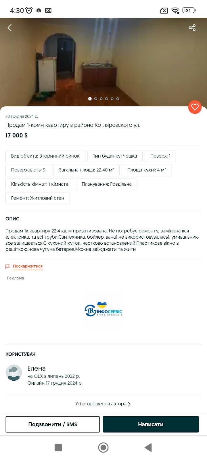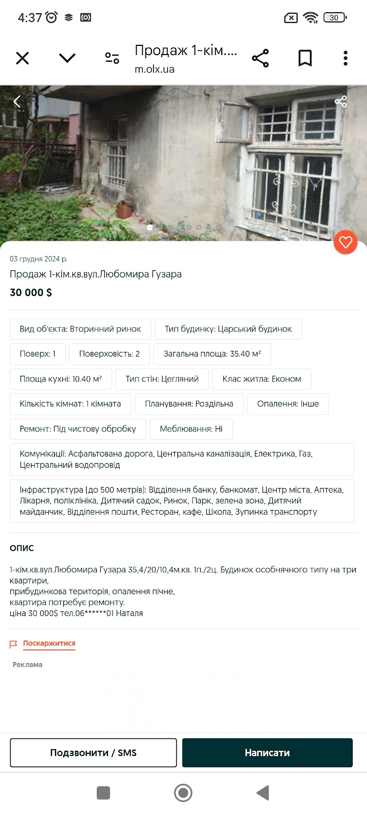 У діапазоні від 30 до 50 тисяч доларів можно придбати 1-кімнатну квартиру у погіршеному стані чи взагалі біз ремонту