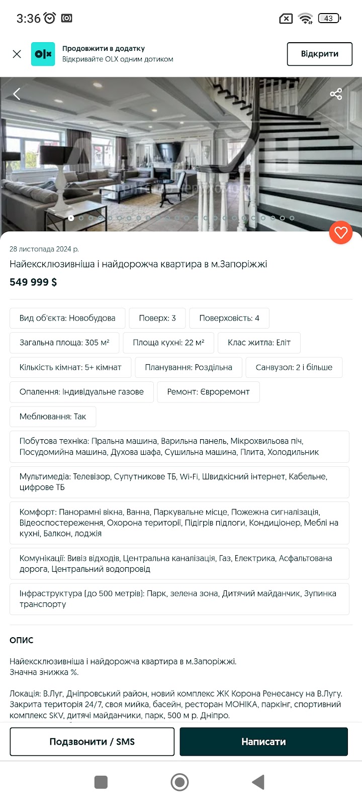 Діапазон люксових квартир та апартаментів ширше ніж у Запоріжжі, є квартири і майже за мільйон доларів:
