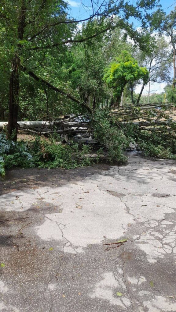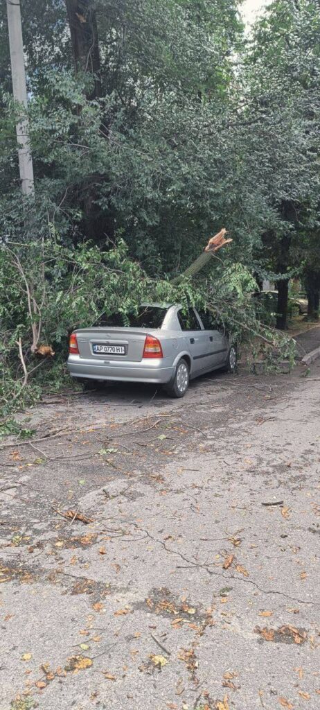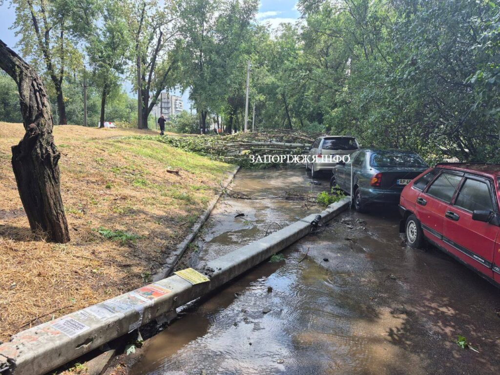 Постраждала від негоди і запорізька природа. На у різних районах міста вітер валив дерева з корінням, ламав гілля та навіть валив стовпи. Внаслідок вітрових поривів також повідомляють про пошкодження автівок та перекриття руху міського транспорту.
