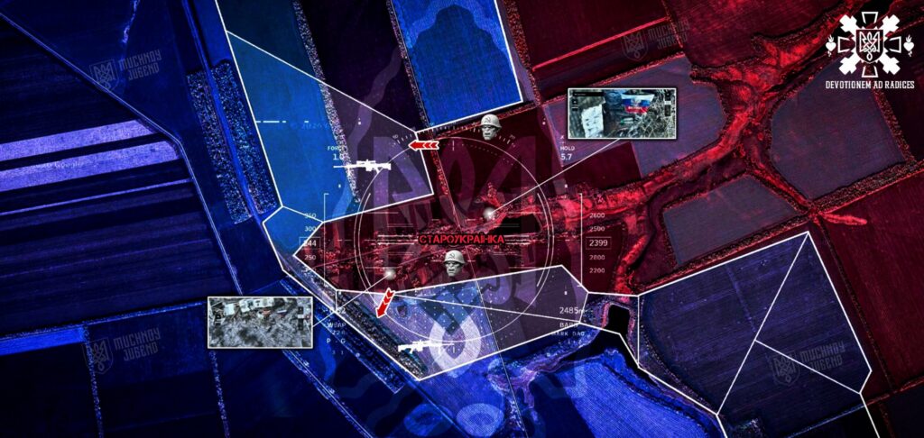 За даними осінт-аналітика Muchnoy Jugend, російські війська намагаються закріпитися у Староукраїнці, зокрема на півночі біля ставка та на західних околицях населеного пункту. Дії ворога відбуваються малими групами, однак фіксуються спроби облаштування позицій, що свідчить про підготовку до утримання зайнятих рубежів.