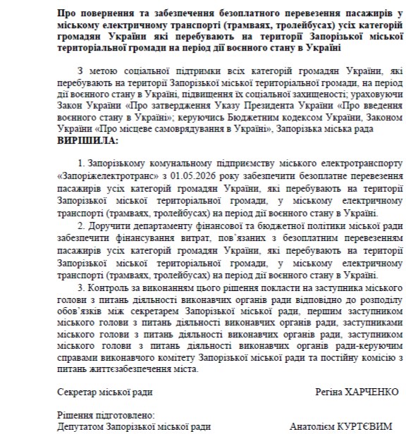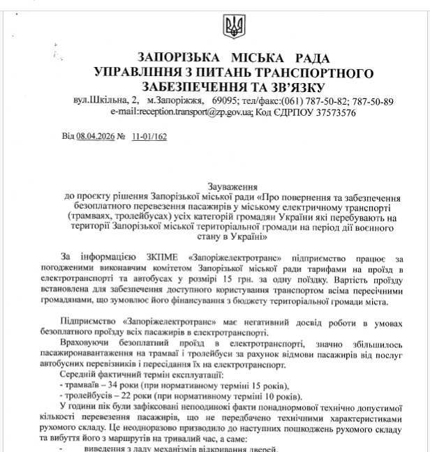 Як випливає з пояснювальної записки, основним фінансовим наслідком стане втрата доходів від платного проїзду. За підсумками 2025 року КП «Запоріжелектротранс» отримало від продажу квитків близько 46,9 млн грн. Саме цю суму місту доведеться компенсувати підприємству у разі скасування оплати.