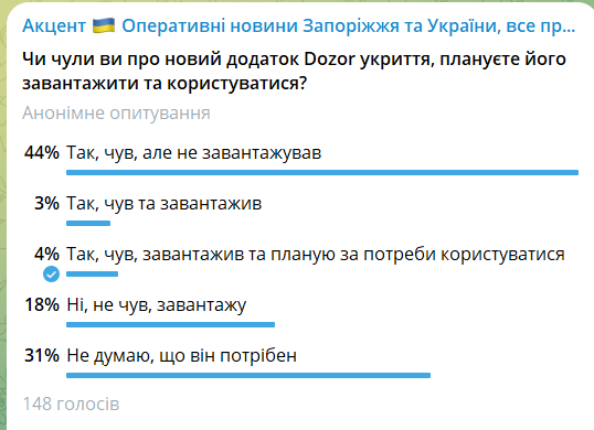 The post Скільки запоріжців готові користуватися новим додатком «DozoR Укриття»: приголомшливі цифри first appeared on Портал Акцент.
