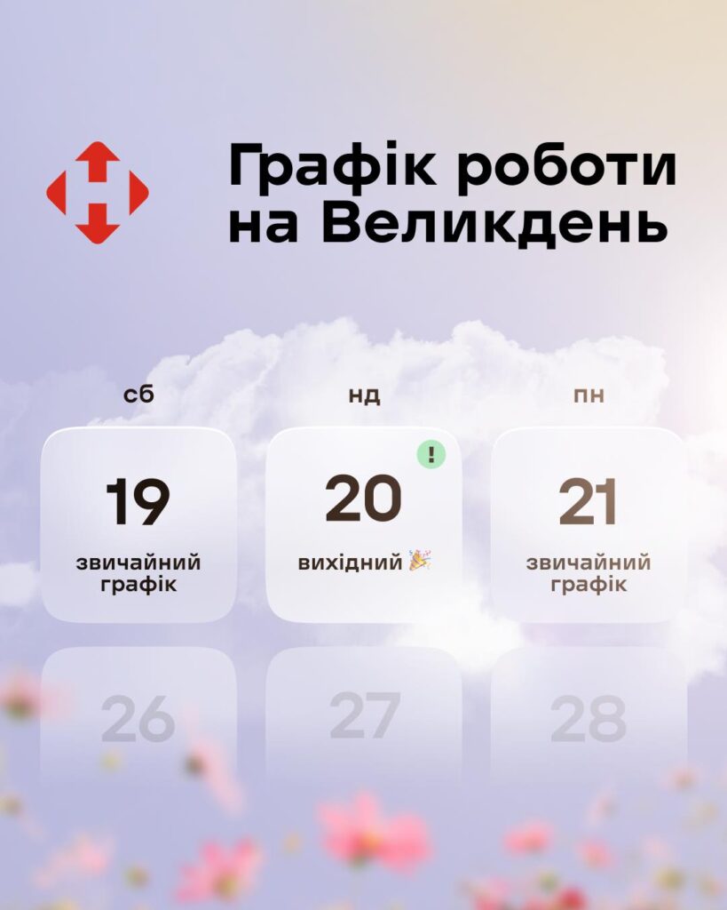 - 20 квітня: відділення, адресне обслуговування та доставка у поштомати не працюватимуть;