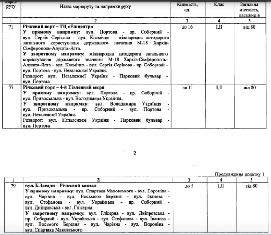 - З’єднає Річковий порт із великим торговим центром «Епіцентр». Автобуси їхатимуть через вулицю Портову, проспект Соборний, Сергія Сєрікова, Космічну та виїжджатимуть до траси на Харків–Сімферополь–Ялта. У зворотному напрямку – тим самим маршрутом.