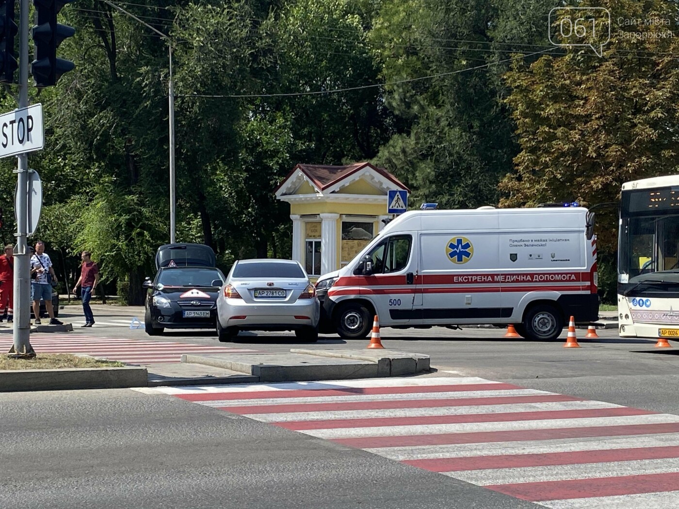 Близько опівдні, 30 липня, на проспекті Соборному у Запоріжжі сталася ДТП. На перехресті з вулицею Південноукраїнською не поділили дорогу навчальний автомобіль, карета «швидкої» і легкове авто. У поліції поки що не повідомляли інформацію про обставини ДТП та постраждалих.
