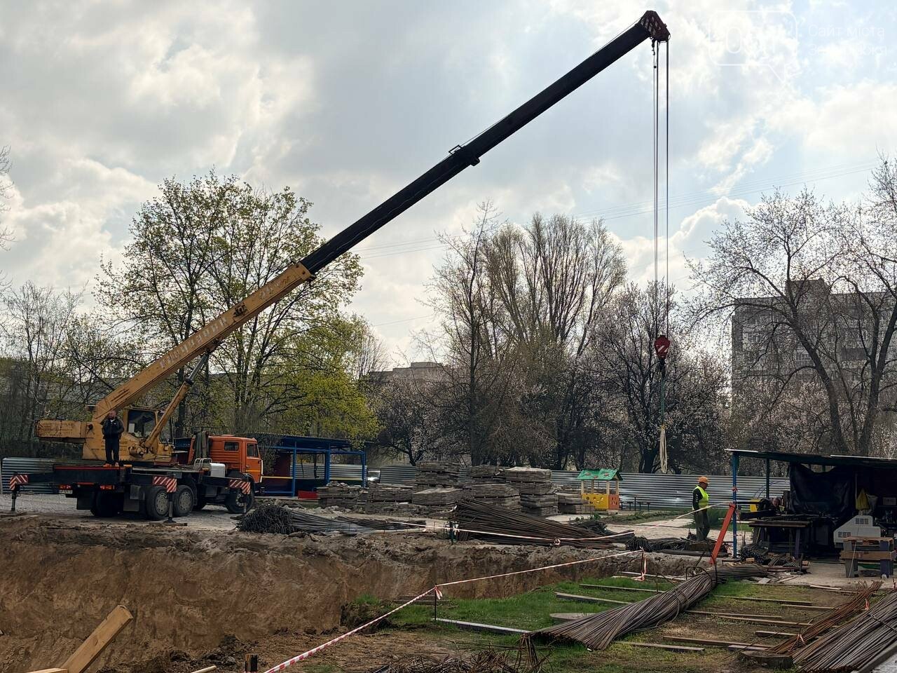 “Тут буде три входи, два ліфта для маломобільних груп населення — це протирадіаційне укриття, дитячий садок, який ми будуємо на глибині 6,5 метрів. Нове будівництво. Цікавий об’єкт”, — говорить виконроб компанії підрядника “Інтерпрофсервіс” Юрій Яценко.