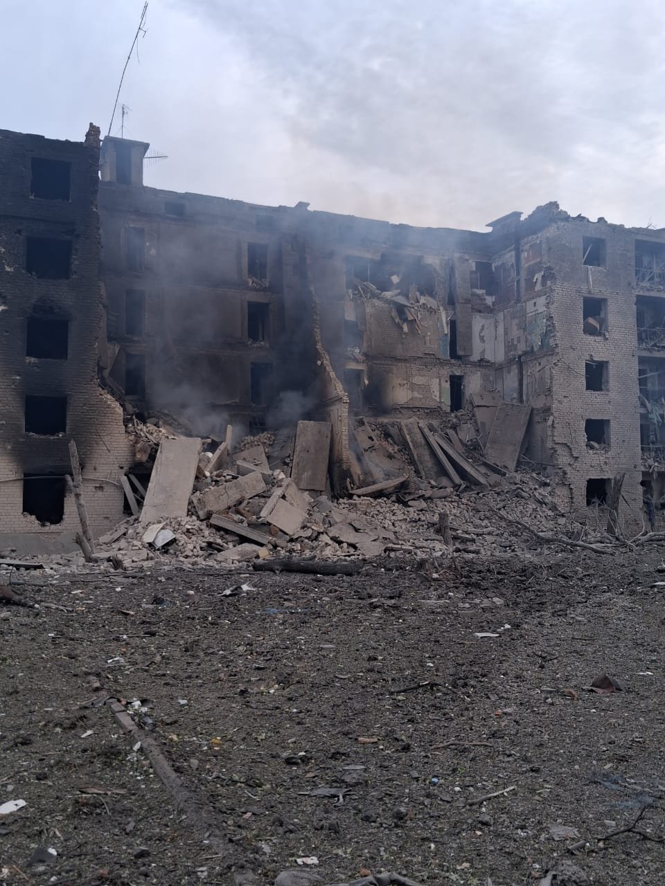 24 вересня під ворожі удари потрапили п’ятиповерховий житловий будинок і дитячий садок “Сонечко”. Фото з наслідками атак опублікували у Гуляйпільській міській територіальній громаді.