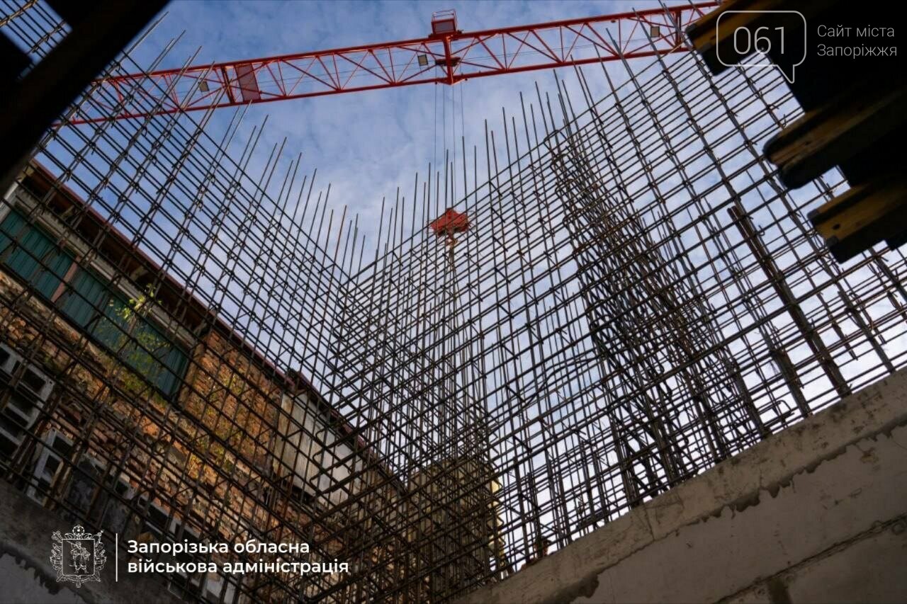 Паралельно триває цегляна кладка стін і встановлення опалубки для вертикальних конструкцій. Про це повідомляє пресслужба Запорізької ОВА.