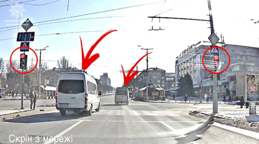 Двоє водіїв маршрутних транспортних засобів вирішили ”проскочити“ перехрестя на заборонний сигнал світлофора в Запоріжжі.