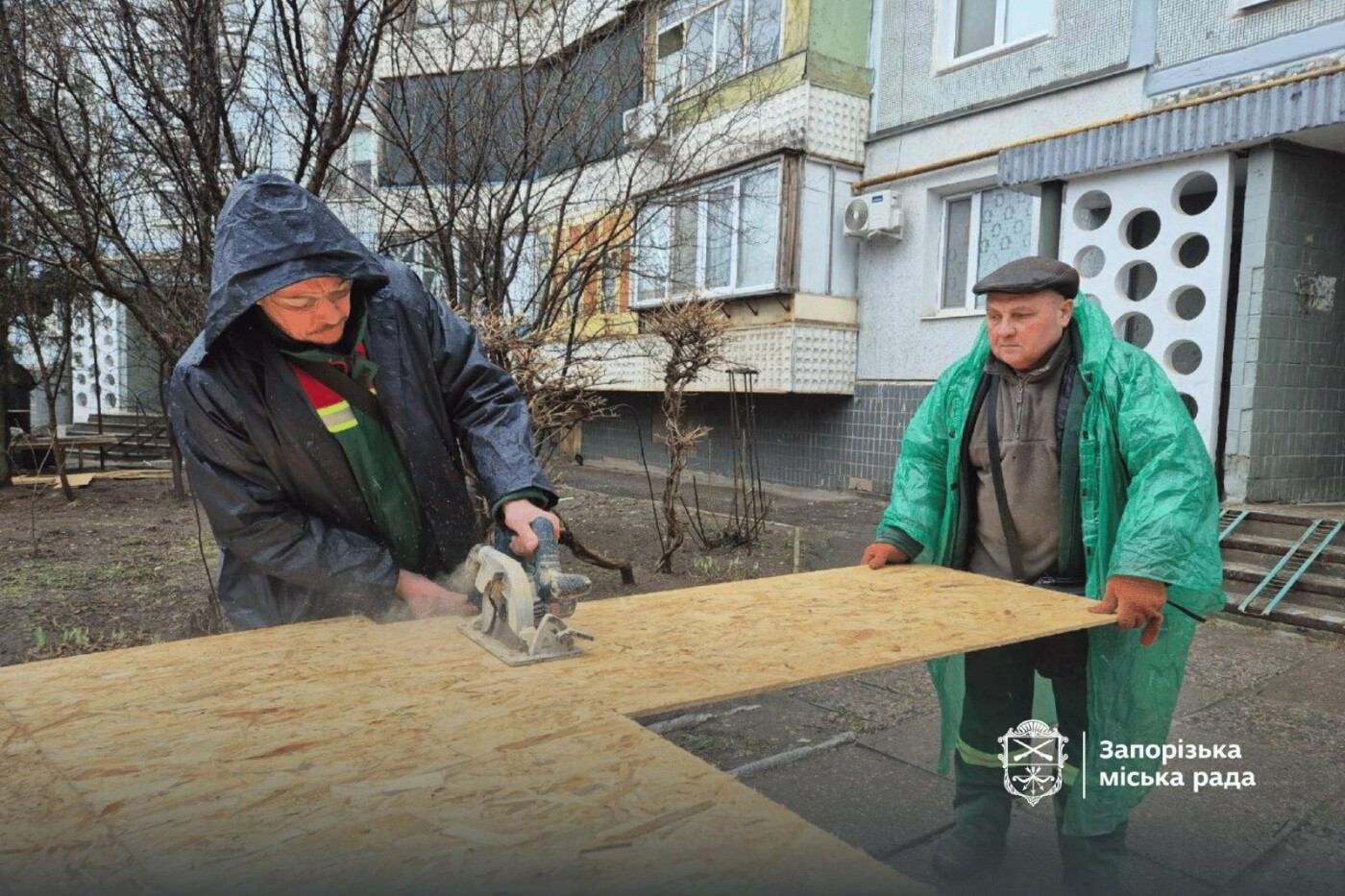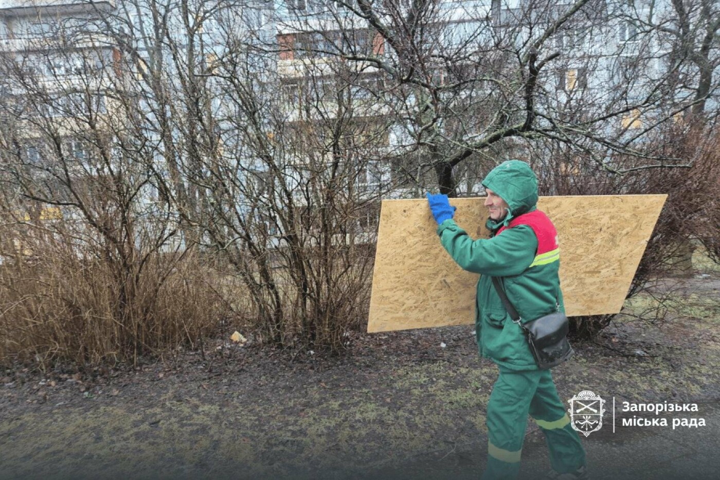 Запорізькі комунальники продовжують першочергові роботи у будівлях, які зазнали руйнувань під час атак цього понеділка.
