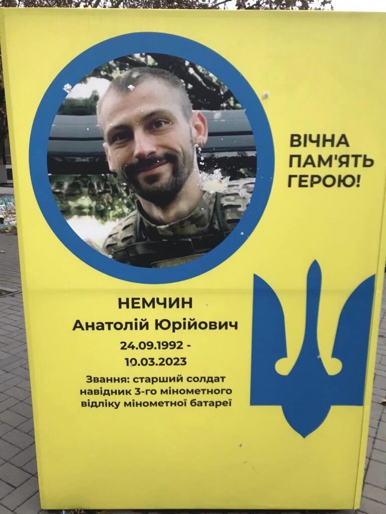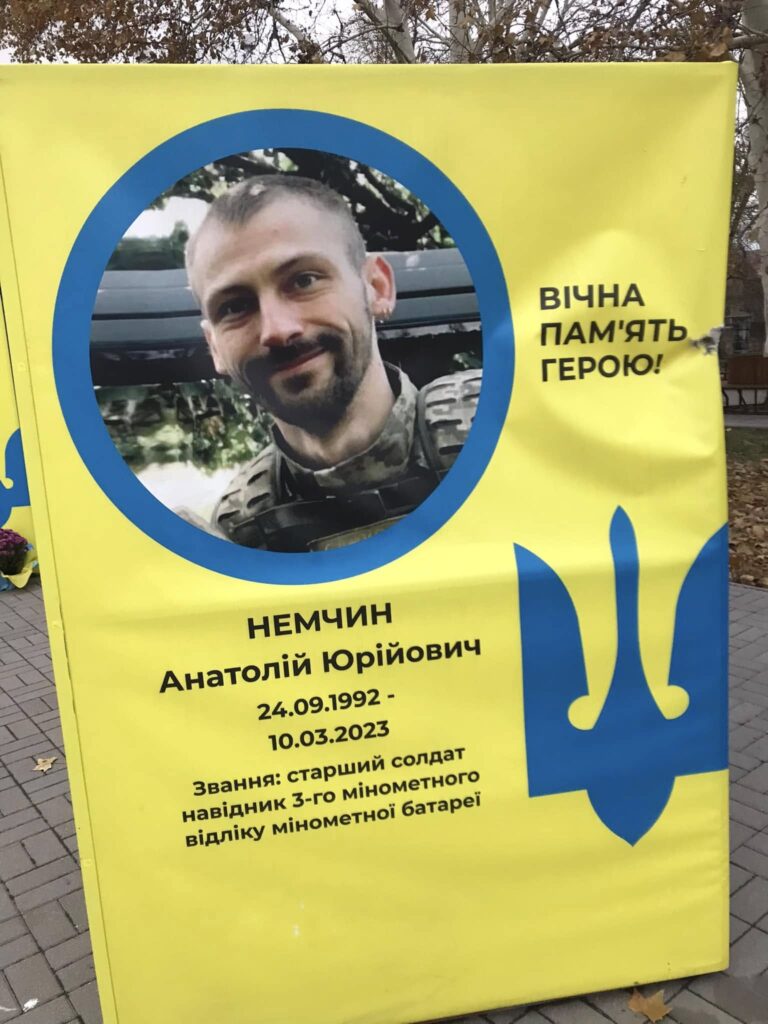 Так, невідомі пошкодили призму на честь Анатолія Немчина. 30-річний чоловік пішов захищати незалежність України з початку повномасштабного вторгнення: 28 лютого 2022 року.