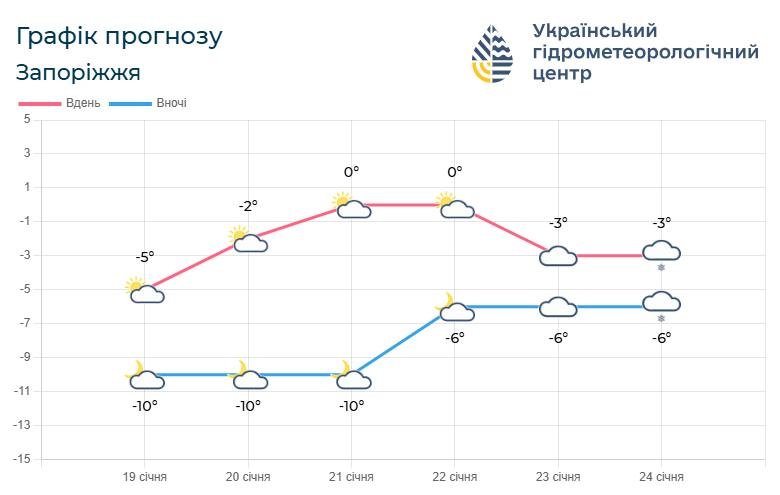 - 19–20 січня: вночі – -10°С, вдень – -5…-2°С;