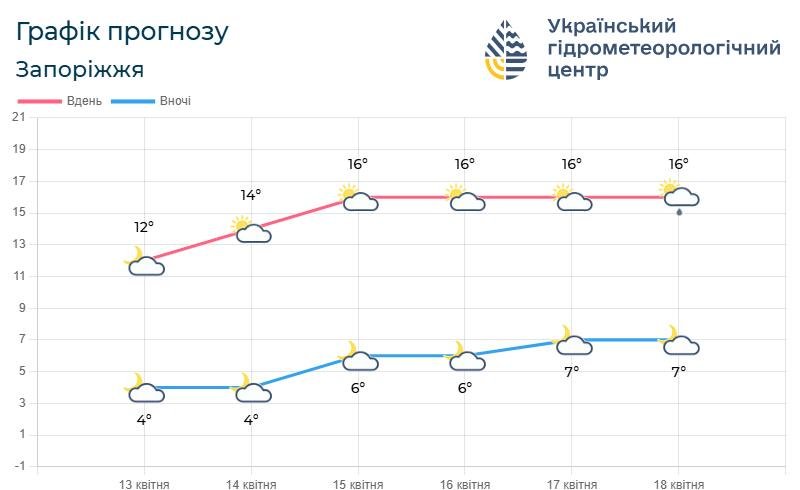 Цього тижня у Запоріжжі прогнозуються до 18° тепла, але в окремі дні пройдуть дощі.