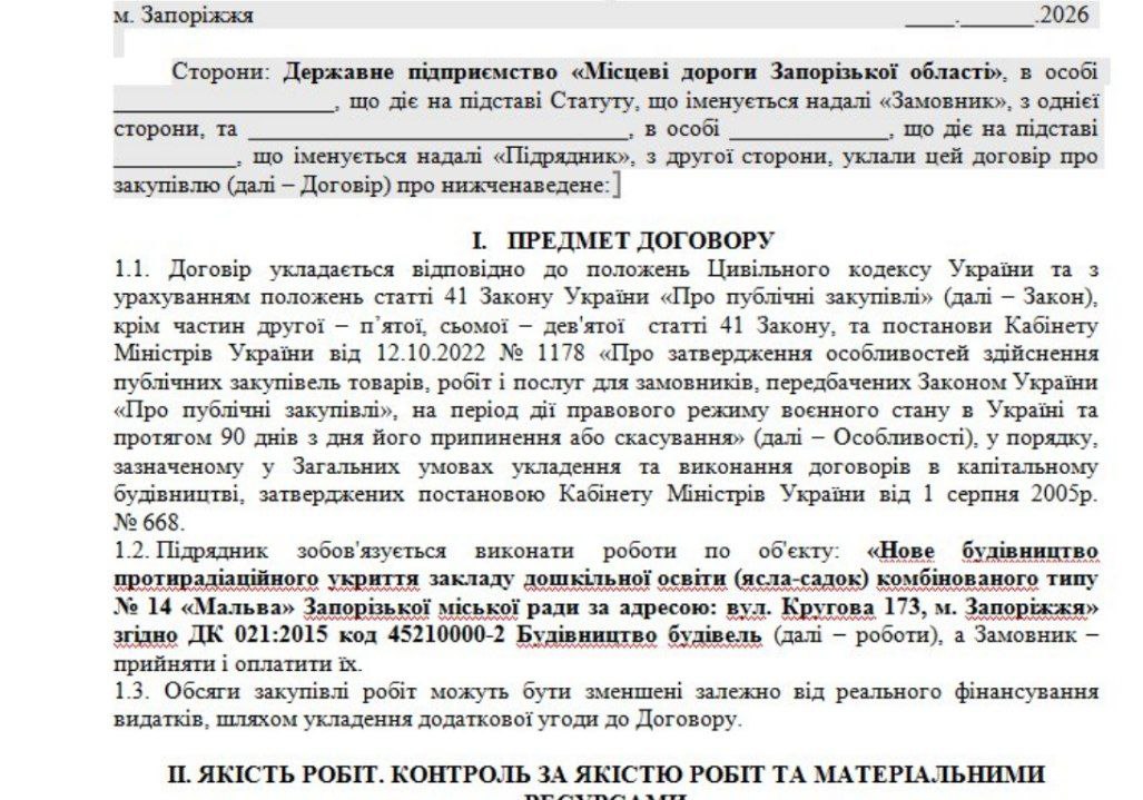 У Запоріжжі оголосили тендер на нове будівництво протирадіаційного укриття для дошкільного навчального закладу №14 «Мальва», що розташований на вулиці Круговій, 173. Це не ремонт існуючого приміщення, а зведення окремої захисної споруди цивільного захисту зі всіма необхідними інженерними системами та технічними параметрами, що забезпечують захист дітей і персоналу під час повітряних тривог, радіаційної загрози чи інших екстремальних ситуацій.