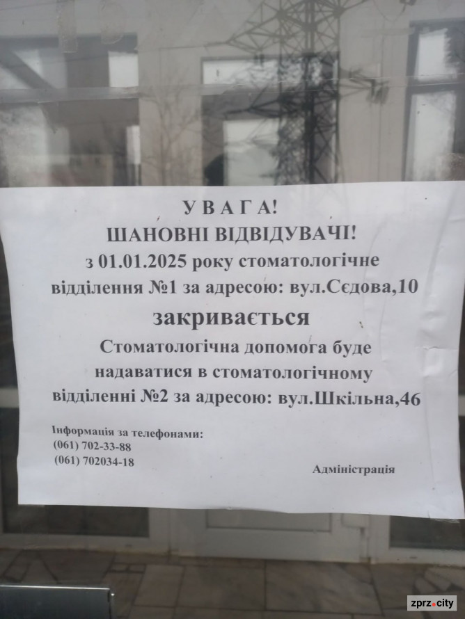 Тим часом, запоріжець Олександр Глухов опублікував на своїй сторінці у фейсбуці (відкрита тільки для друзів) фото з об’явою про закриття цього стоматологічного відділення. «Працювала більш, ніж 40 років, та врятувала багато людей», — написав він.