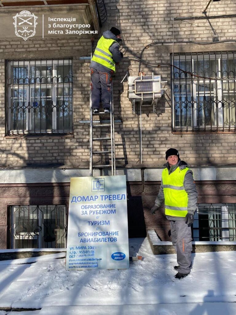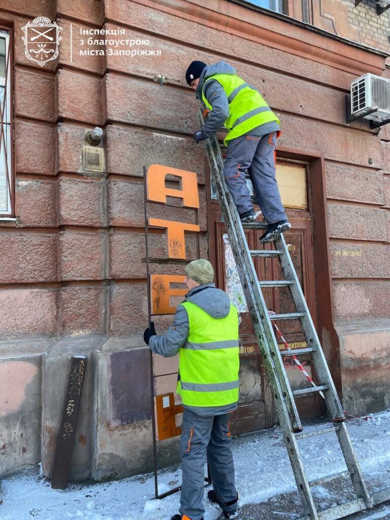 У Запоріжжі триває масштабна кампанія з демонтажу незаконних рекламних конструкцій та заміна російськомовних вивісок.
