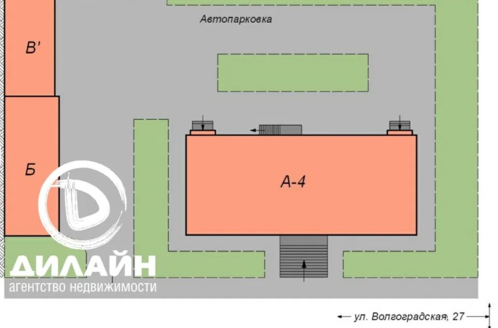 Окрема 5-ти поверхова будівля «внутрішнім» двором, розташована по вулиці Волгоградська. На території розташована крита автостоянка та власна котельня. Загальна площа приміщень – 1633 м.кв., розташованих на 4-х поверхах і високому цоколі. Площа кожного поверху – 327 м.кв.