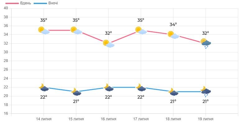 Протягом робочого тижня в Запорізькій області температура повітря коливатиметься від 31 до 36°С.