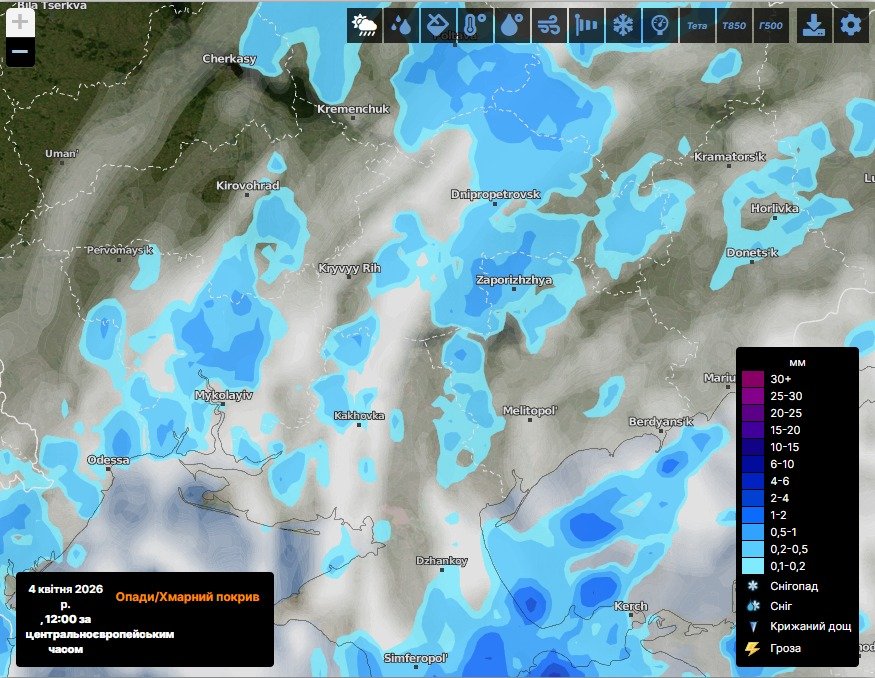 4-5 квітня у Запоріжжі погодні умови перебуватимуть під впливом поля зниженого атмосферного тиску. У суботу очікуються невеликі дощі, місцями грози. Про це повідомили в Запорізькому обласному центрі з гідрометеорології.