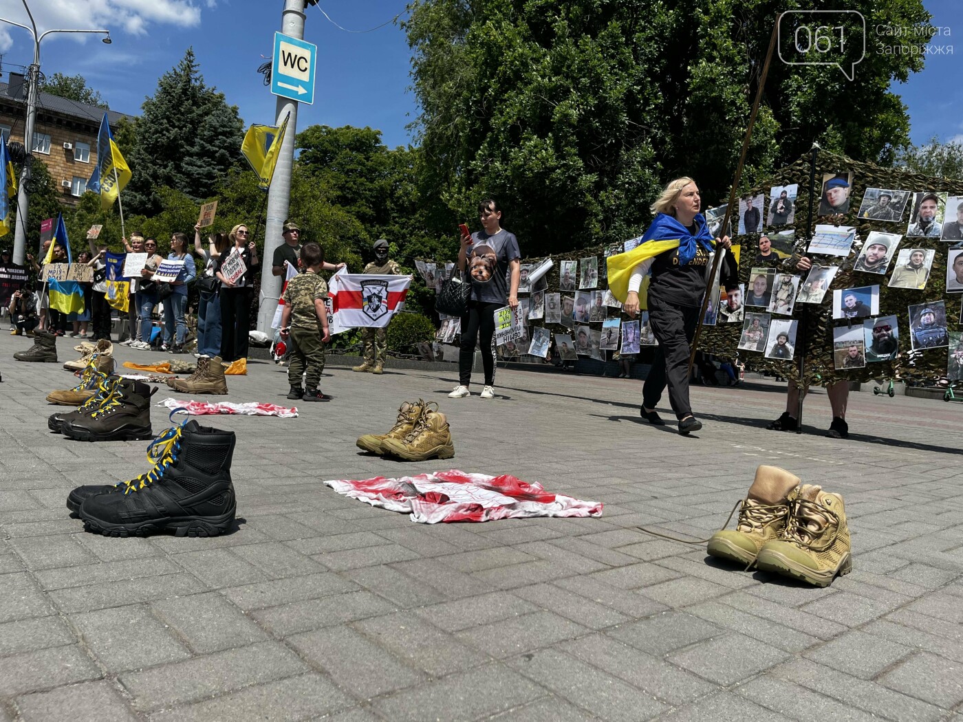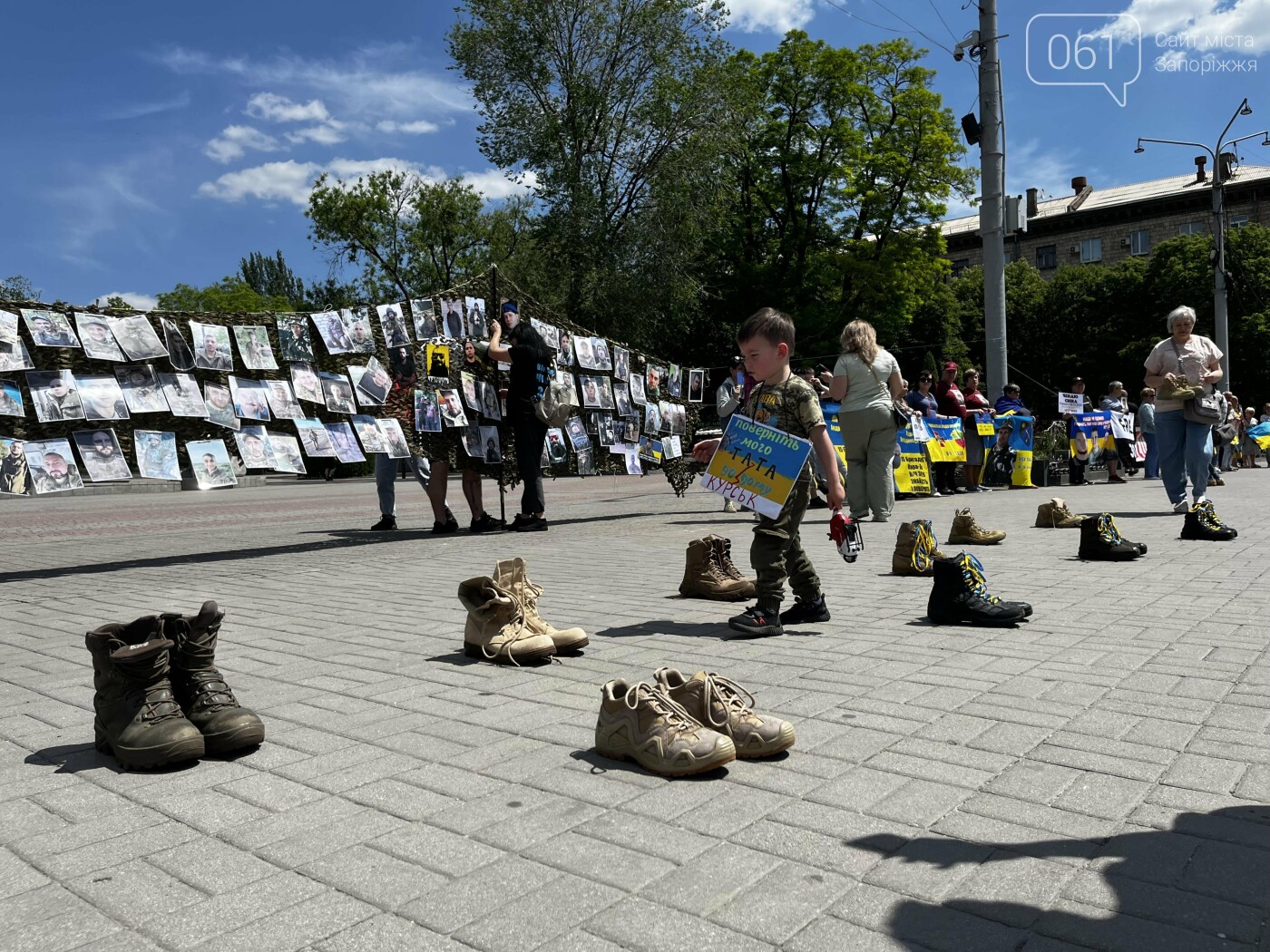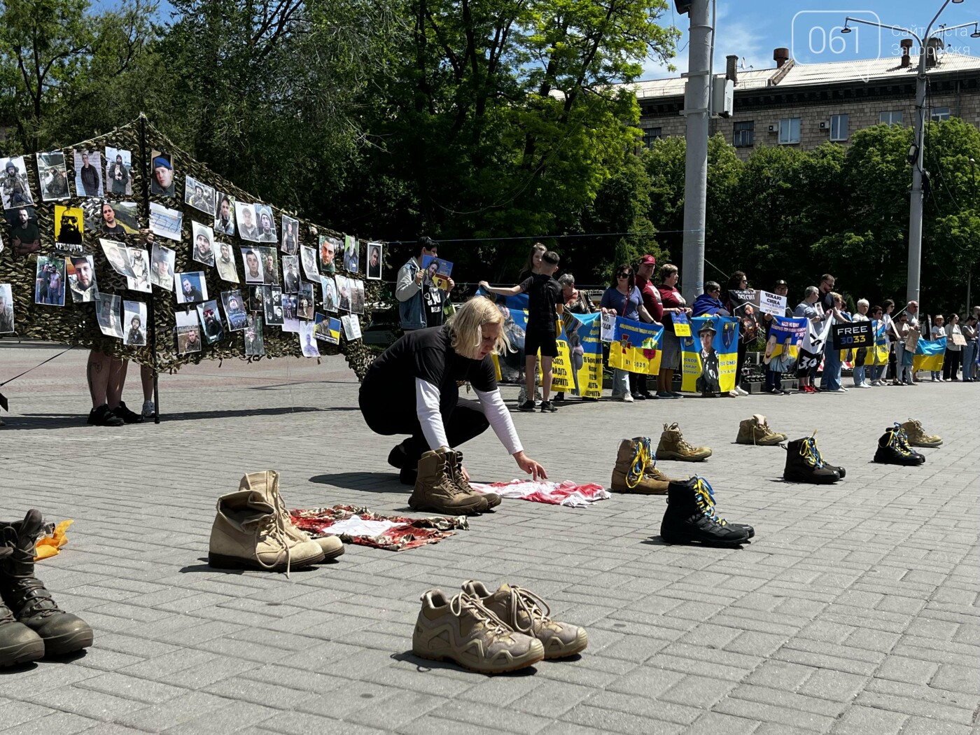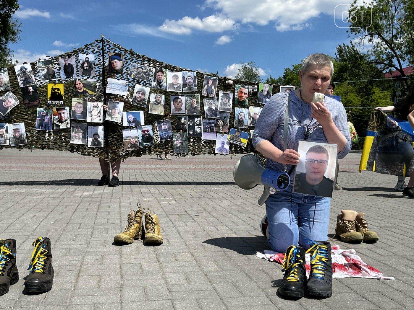 Сьогодні, 24 травня, на площі Майстрів близько сотні людей вийшли на акцію підтримки військових полонених та безвісти зниклих. Рідні та друзі військових виставили їхні берці та одяг, аби нагадати про долю бійців, які і досі в полоні.
