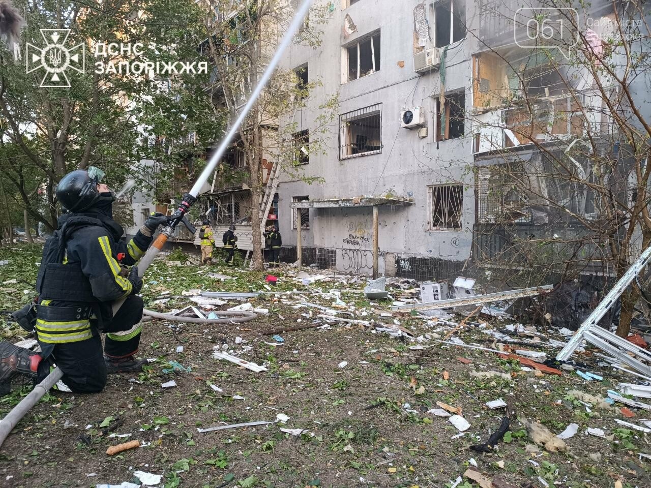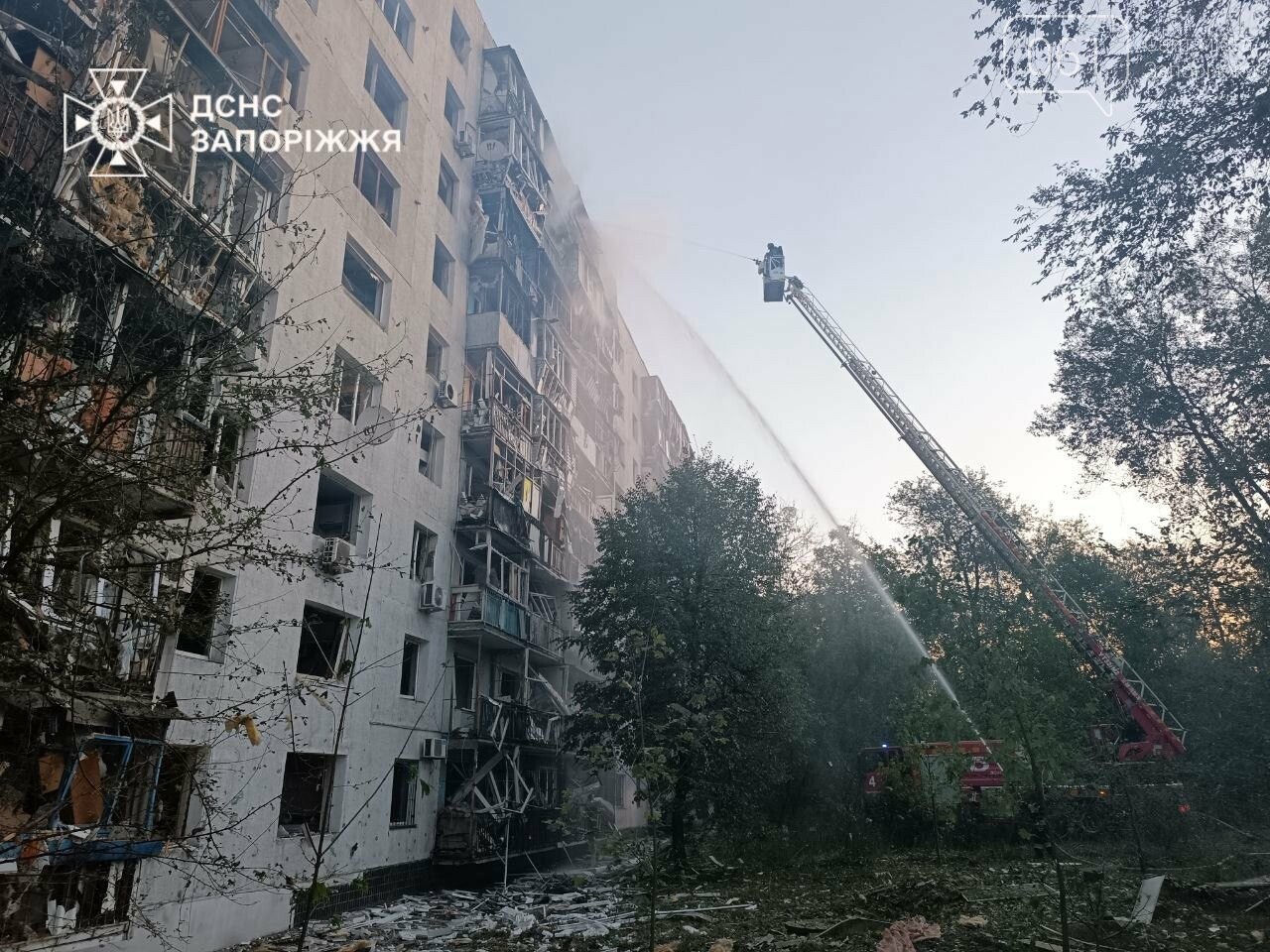 Вранці 28 вересня війська рф завдали ракетного удару по обласному центру. Ракета влучила поруч із житловим дев’ятиповерховим будинком, у результаті чого спалахнула пожежа. Про це повідомляє пресслужба ДСНС у Запорізькій області.