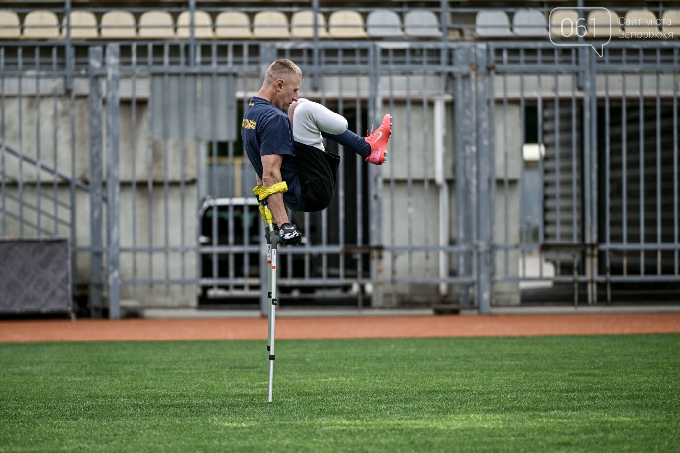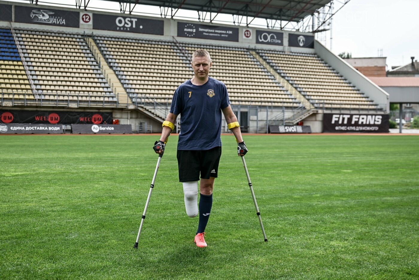 На полі з милицями нині показує гарні результати 37-річний Олександр Мохов. Чоловік жив і працював у Вільнянську, але на початку повномасштабної війни потрапив до війська у Слобожанську бригаду (Харківщина). Поранення він отримав в 2023 році. Після втрати кінцівки, пройшов лікування, протезування, навчився ходити, повернувся до війська та почав грав у футбол.