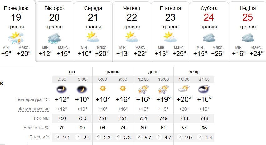 У неділю, 25 травня, знову очікується дощ із грозами.