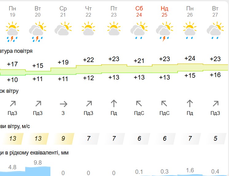 Детальний прогноз погоди на тиждень читайте в матеріала Акценту.