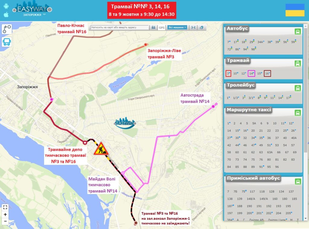 - №3 і №16 — їздитимуть тільки до трамвайного депо від кінцевих «Запоріжжя Ліве» і «Павло-Кічкас»;