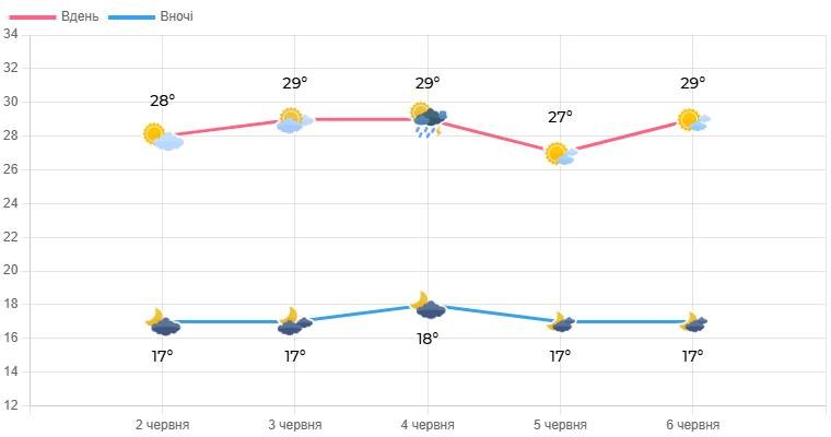 Синоптики обласного центру з гідрометеорології опублікували прогноз погоди у Запоріжжі на перший тиждень літа. За інформацією ЗЦГМ, з 3 по 6 червня загалом очікується суха тепла погода. Температура повітря вдень становитиме 28-29°, вночі 17-18°. Однак 4 червня у Запоріжжі можливі короткочасні дощі з грозами.