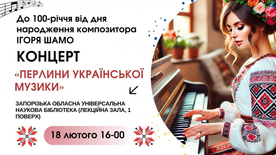 Концерт «Перлини української музики» присвячений 100-річчю від дня народження композитора Ігоря Шамо (21 лютого 1925 — 17 серпня 1982).
