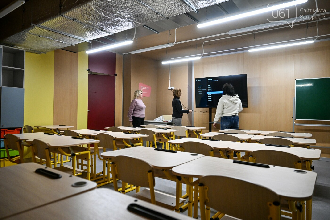 На Правому березі Запоріжжя відкрили ще одну підземну школу на базі гімназії №87. Це вже 18-й безпечний заклад освіти в межах області та 10-й у місті. Загальна площа підземного простору складає 1424 квадратних метри. Навчальний заклад здатен вмістити до 1000 дітей з двох шкіл у дві зміни.