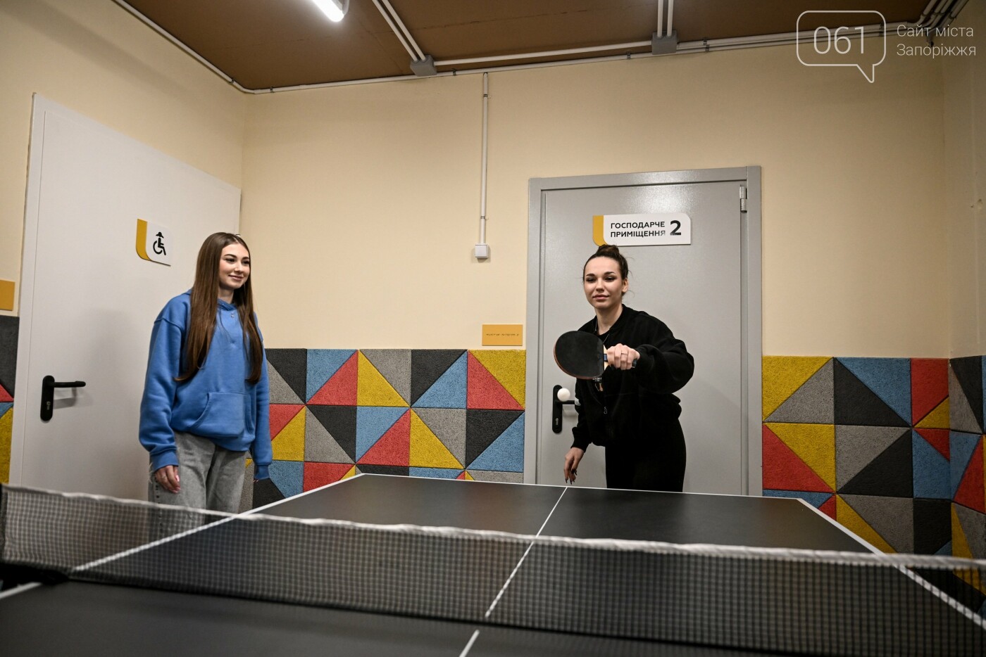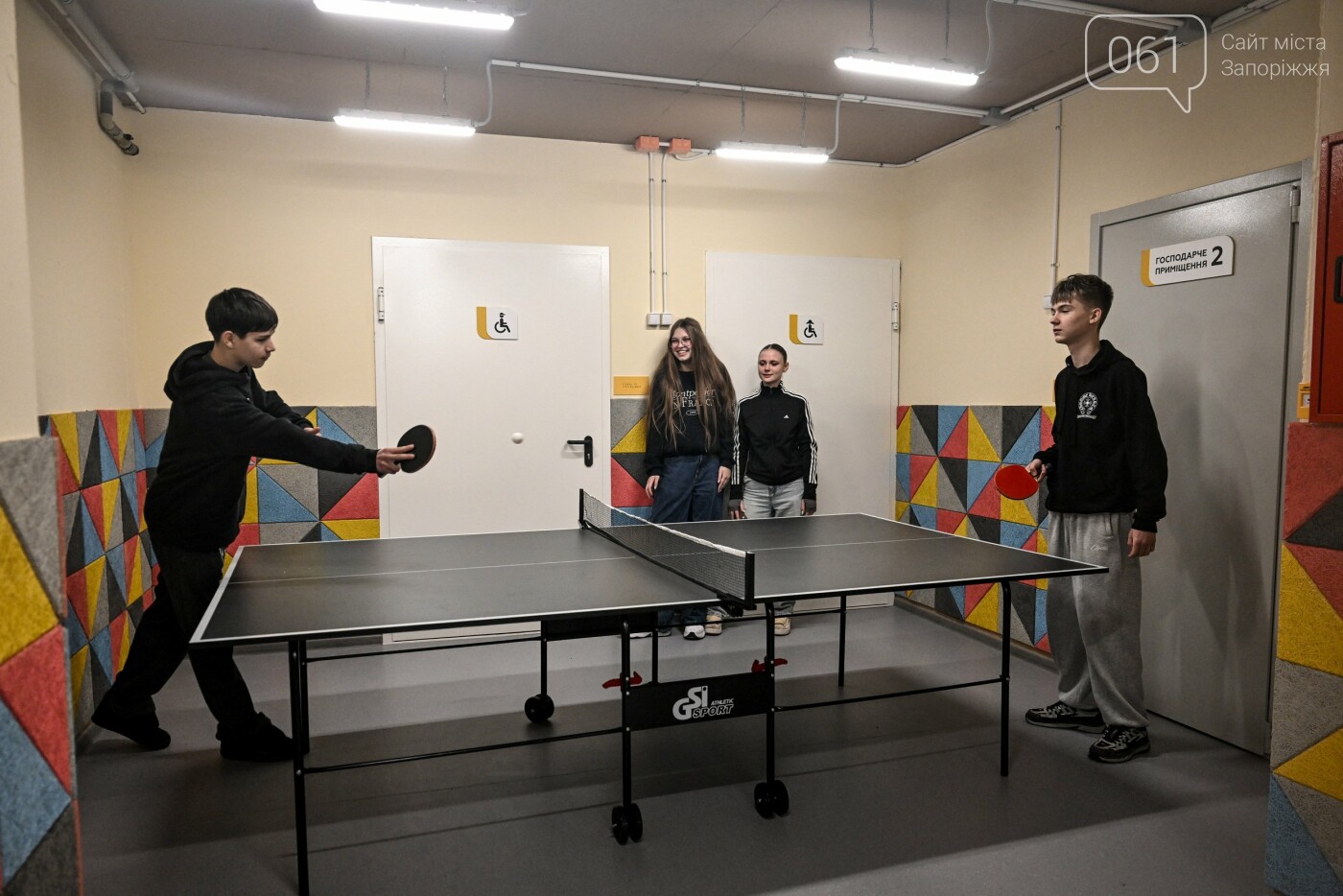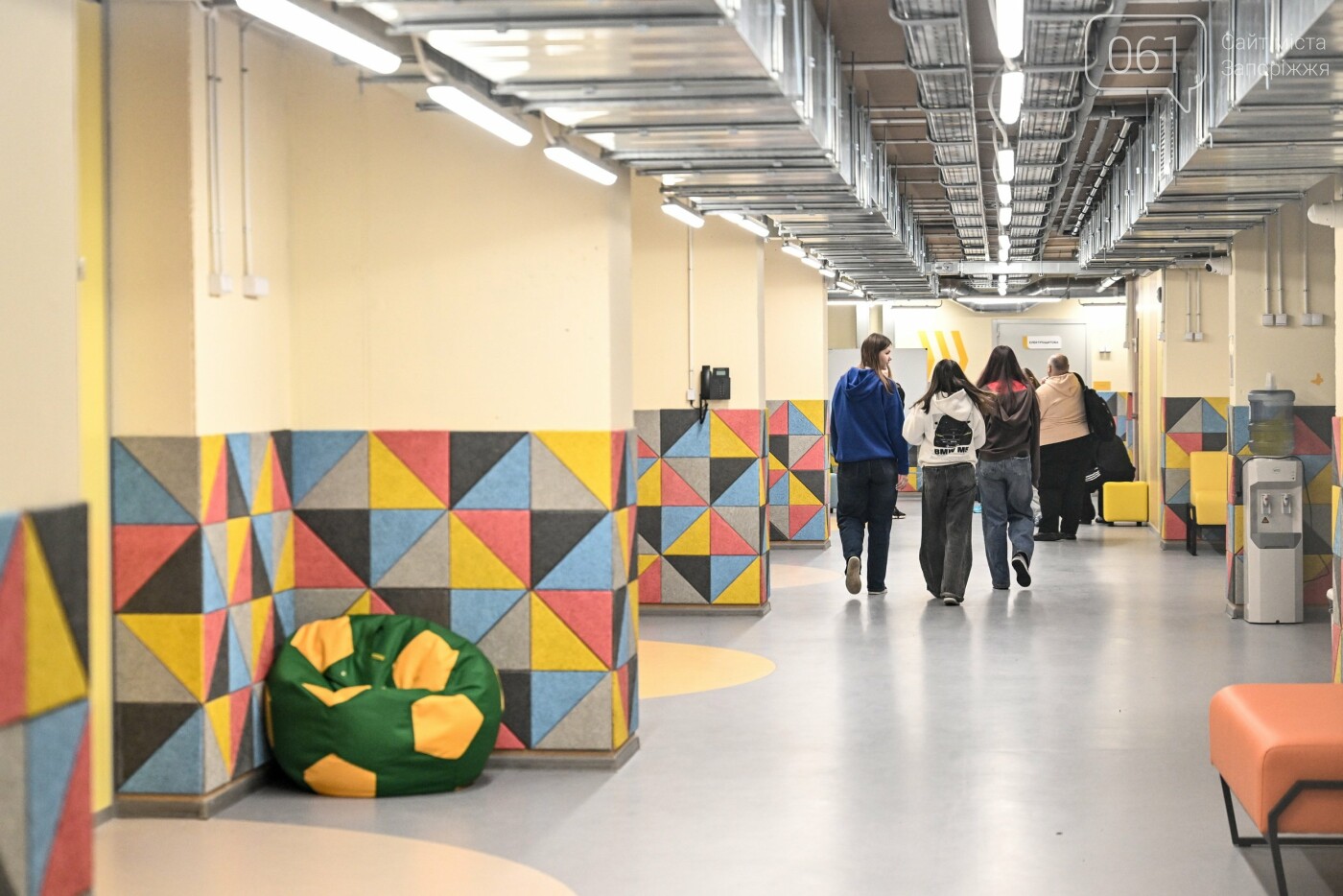 Окрім 13 навчальних аудиторій з мультимедійним обладнанням – інтерактивними дошками та регульованими партами – тут є зона для уроків фізкультури, кабінет психолога (який може слугувати інклюзивним класом), медичний кабінет, буфет та лаунж-зона з пуфами, полицями для книжок і навіть тенісним столом.