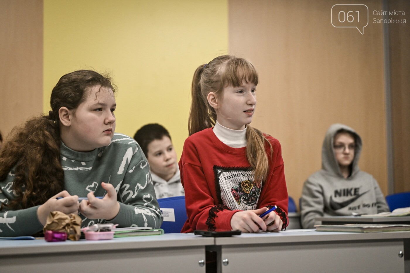 «В перший день був відкритий урок хімії з експериментами – робили сніг з полімерів. Уроки по 35 хвилин, але матеріал засвоюється краще через контакт з учителем. Атмосфера як у рідній школі, подобаються голосові ‘дзвінки’ і музика на перервах, зони відпочинку з пуфами та телевізорами. Найголовніше – побачити друзів і вчителів».