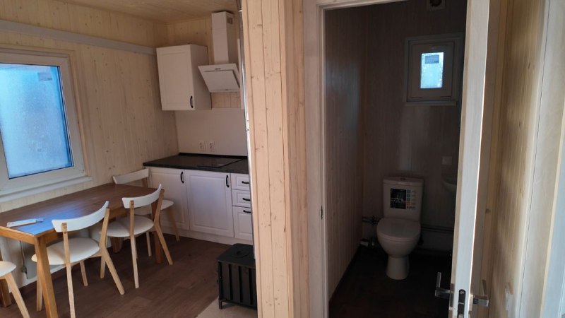 Будиночки встановлюють вже облаштовані: є кухня, ванна, спальні, меблі, техніка, буржуйка та кондиціонер.