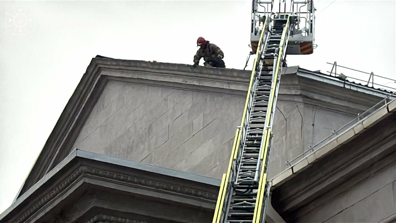Ситуація була критичною ще й тому, що в цей час у філармонії тривав концерт і всередині було повно людей. Рятувальники прибули на місце та на висоті знімали аварійні уламки, щоб вони не травмували глядачів після виходу із закладу.