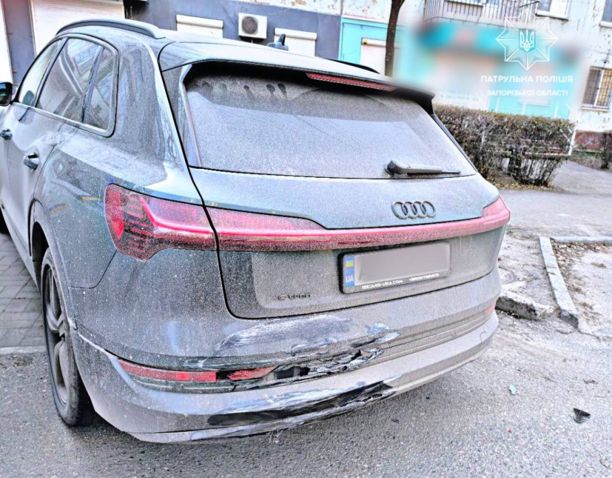 Нещодавно водій легковика Hyundai Accent наїхав на припаркований автомобіль Audi e-tron та втік з місця ДТП. Про подію розповіли у телеграм-каналі патрульної поліції Запорізької області.