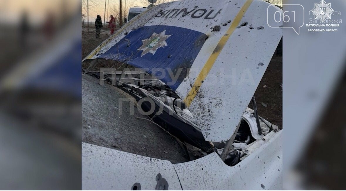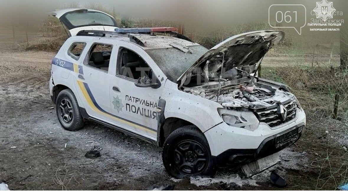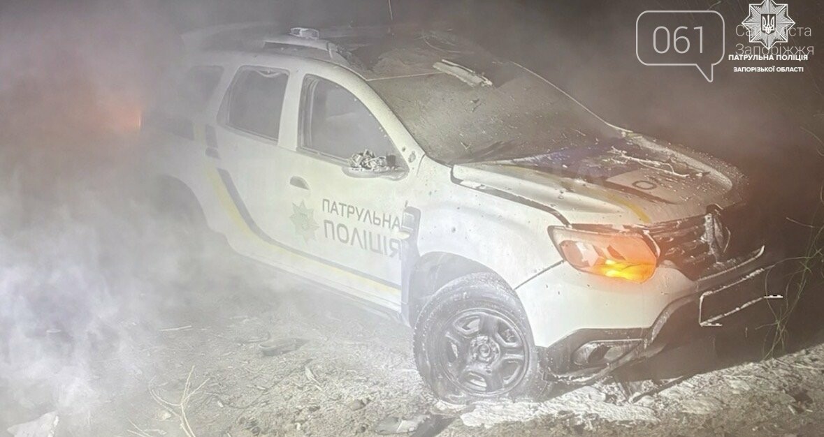 Друга ворожа атака на запорізьких патрульних за дві доби. Ударним БПЛА ворог поцілив у службову автівку.