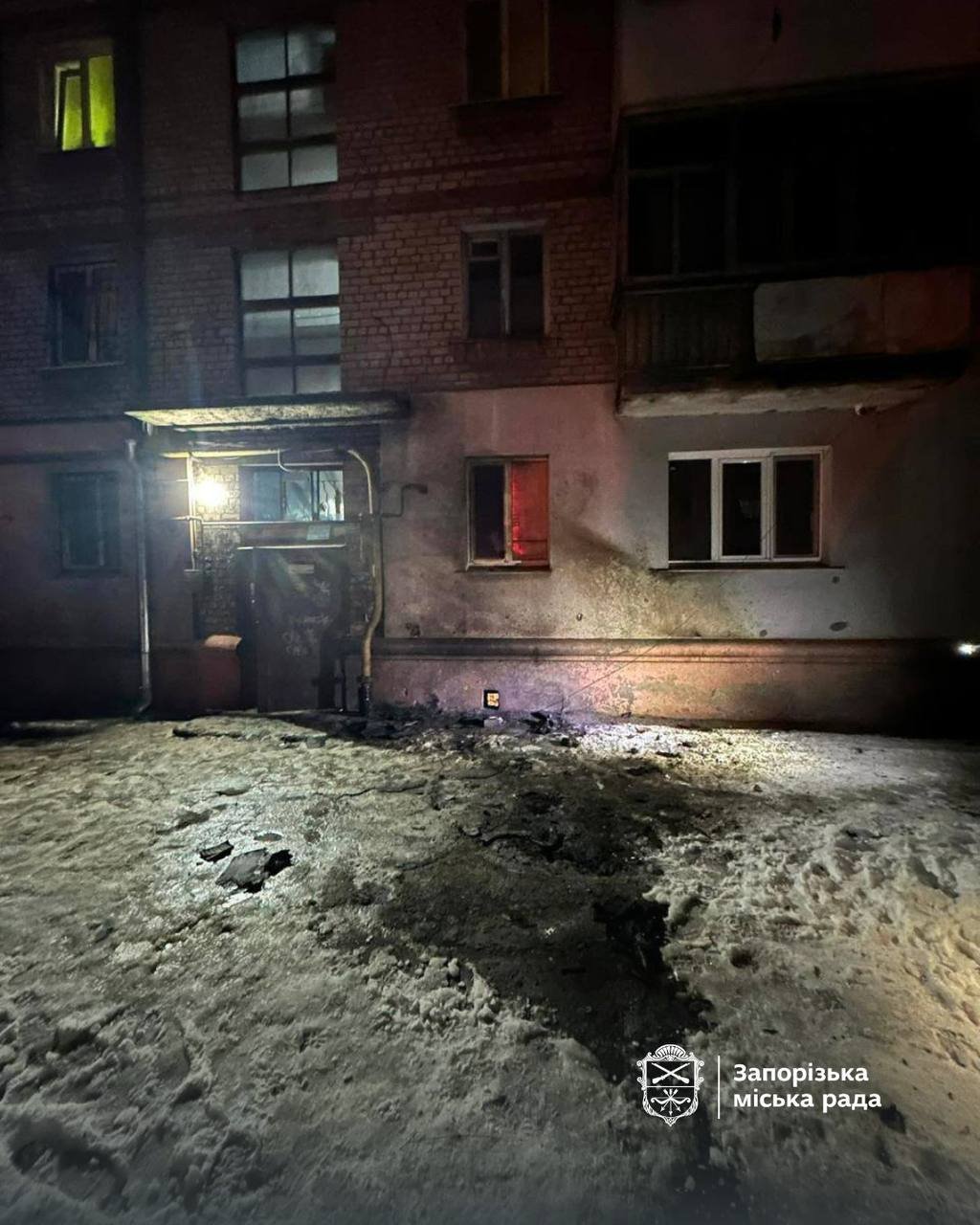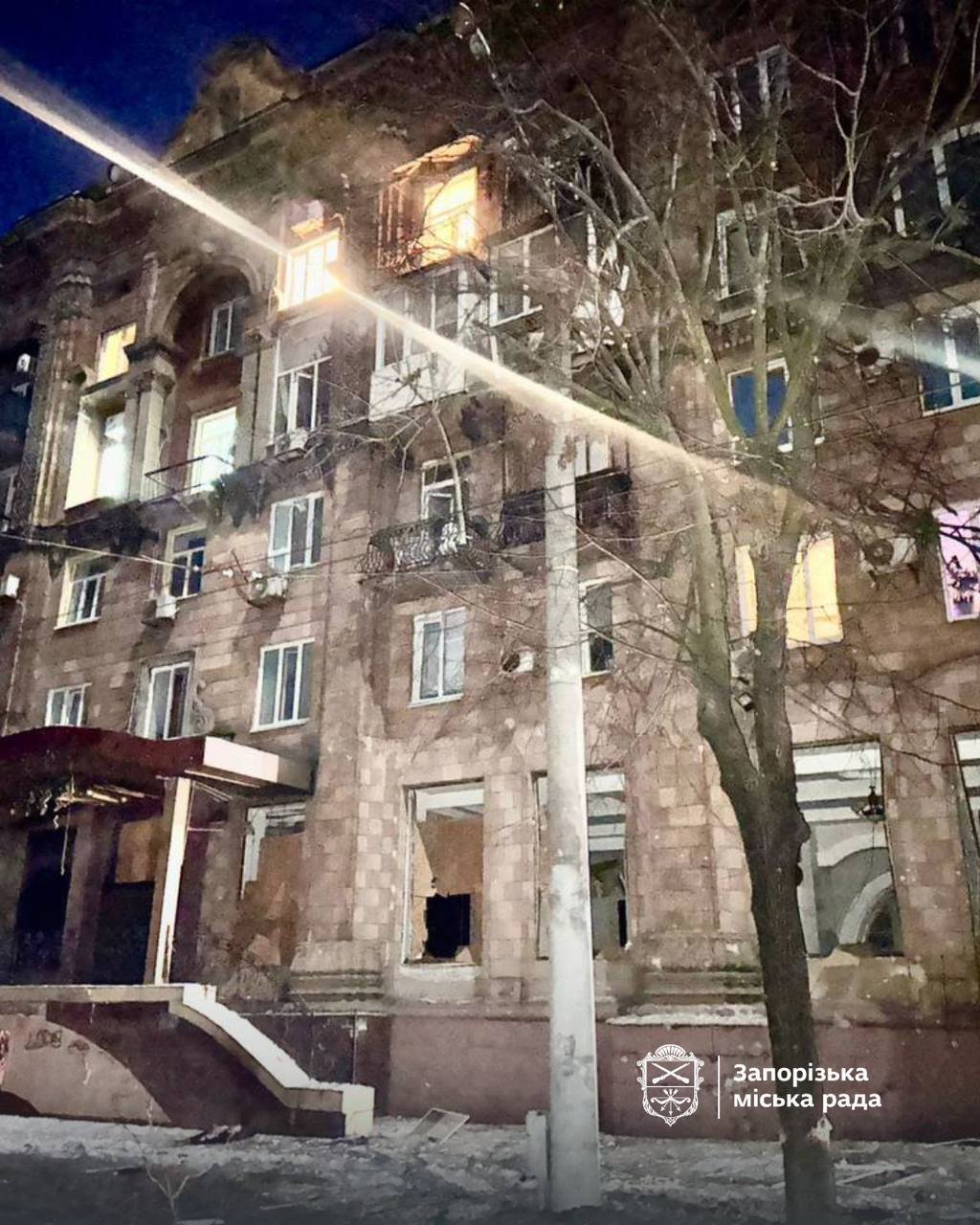 У результаті нічної атаки по Запоріжжю зафіксовано щонайменше дев’ять влучань. У місті виникли пожежі. Фото з наслідками ударів по місту оприлюднили очільник ЗОВА Іван Федоров і в.о. мера Запоріжжя Регіна Харченко.