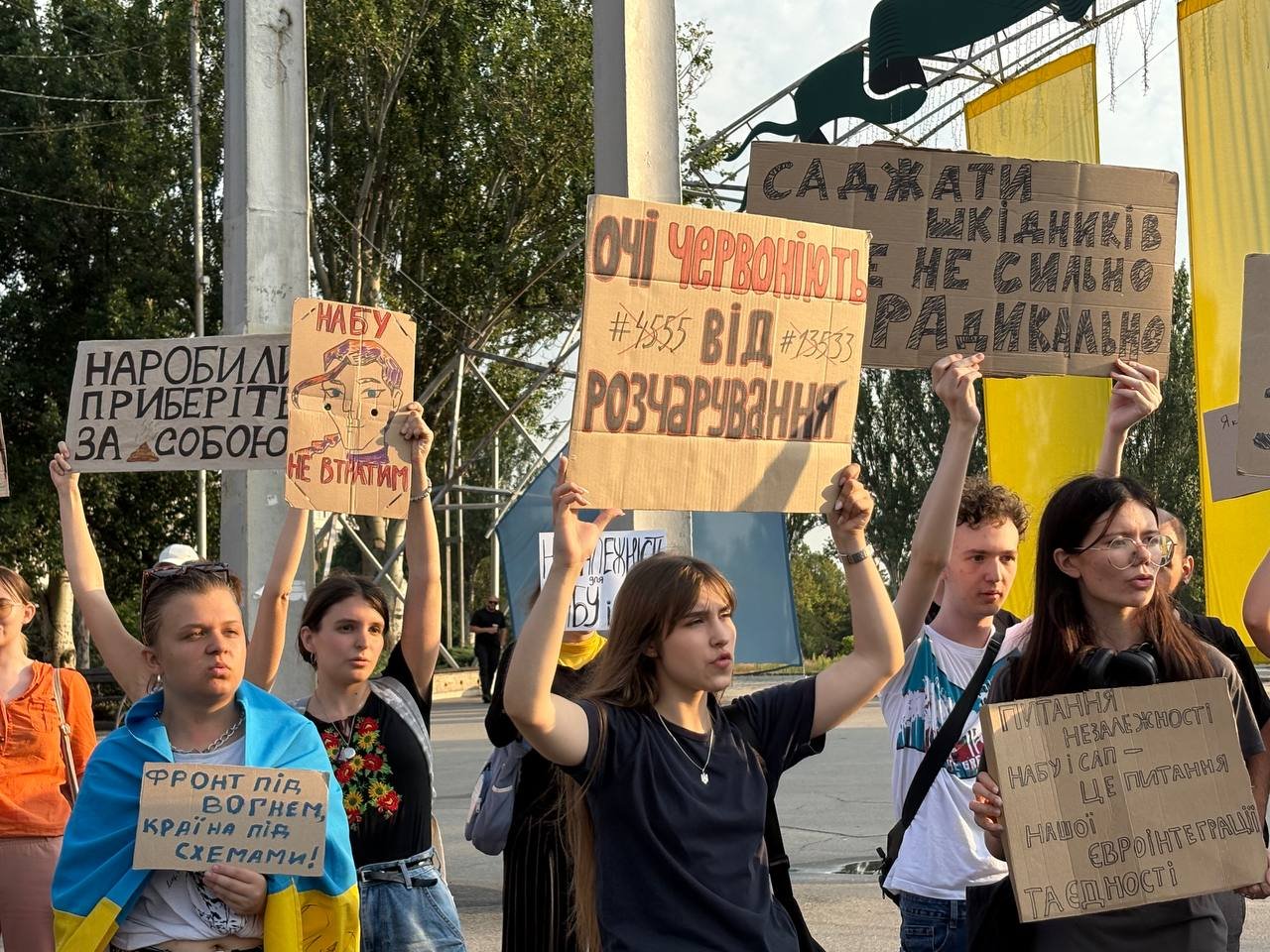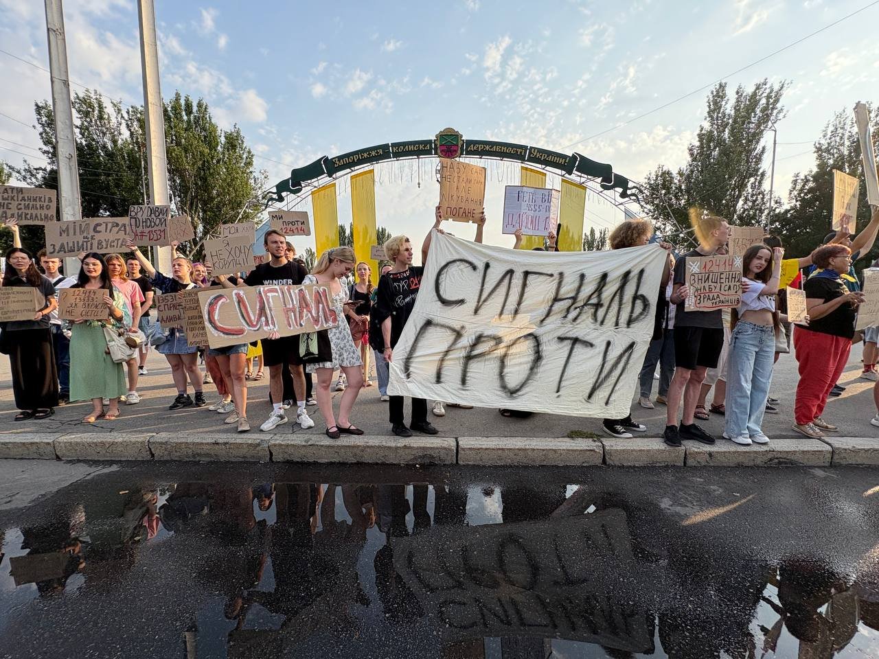Увечері, 30 липня, на площі Фестивальній у Запоріжжі зібралися близько 60–70 людей (протестувальників). Акція проходить навпроти будівлі обласної військової адміністрації. Про це повідомляє кореспондент 061.
