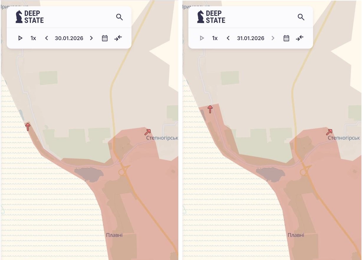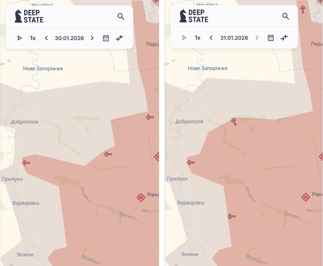 Ворог просунувся у Приморському на Василівщині, а також біля Добропілля на Гуляйпільщині. Про це повідомив OSINT-проєкт DeepState 1 лютого.