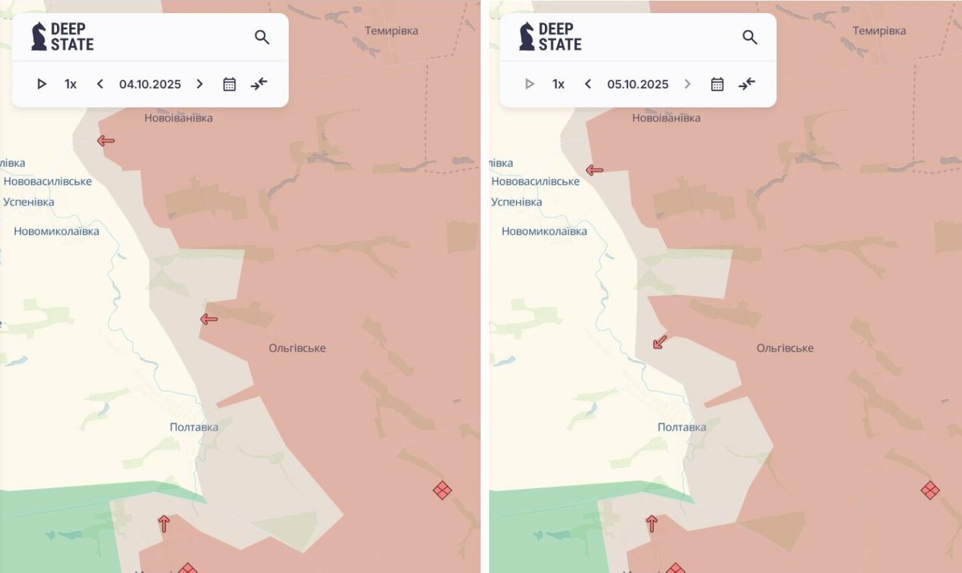 Противник просунувся на Новопавлівському і Гуляйпільському напрямках. Про це повідомив OSINT-проєкт DeepState 5 жовтня.