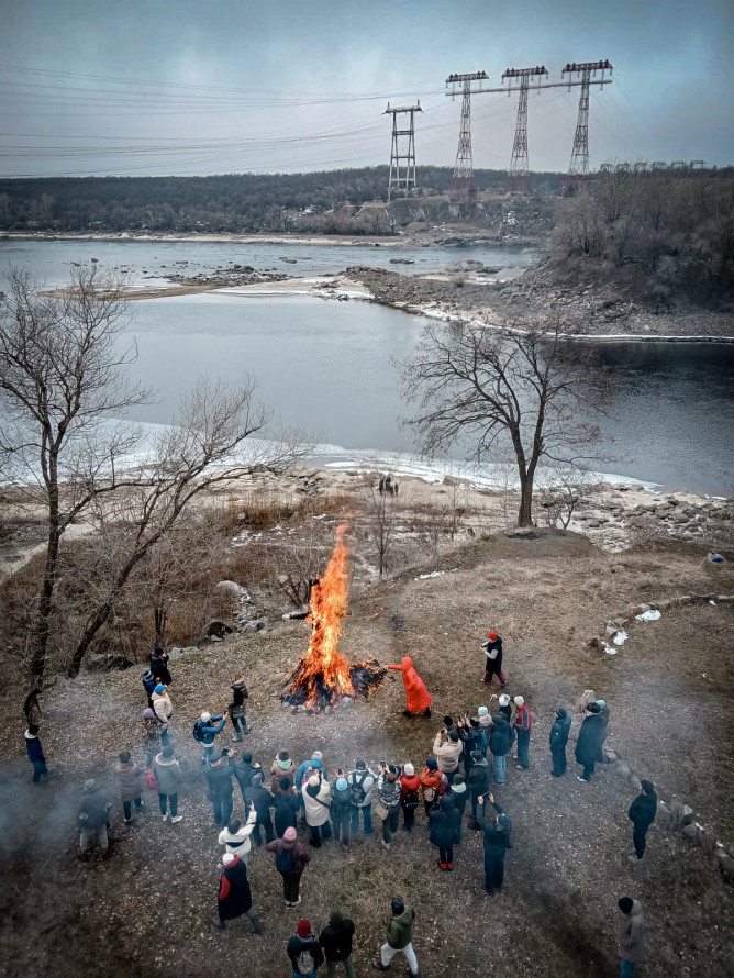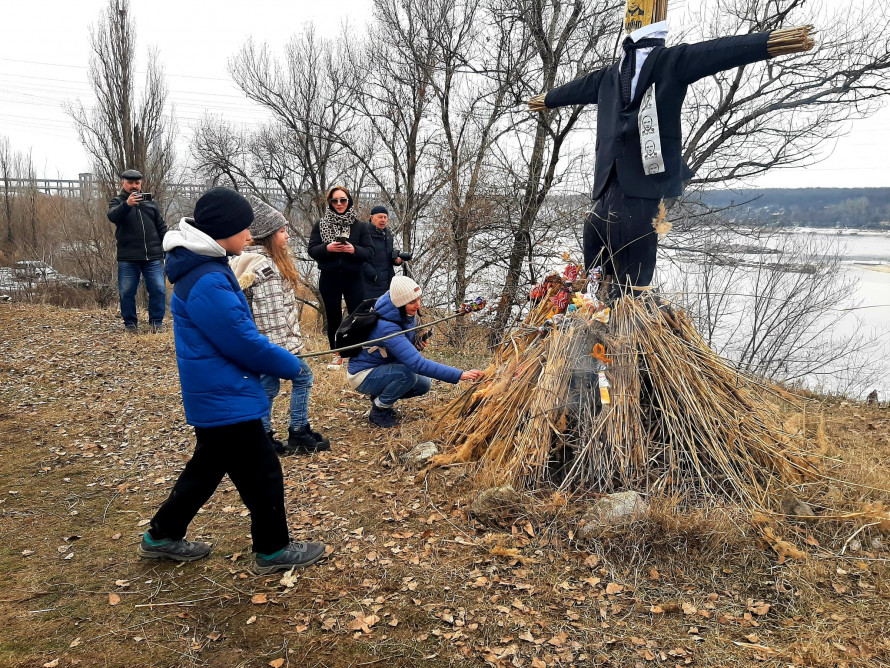 В цьому році в урочищі Сагайдачного — мальовничому місці на березі Дніпра, з якого відкривається гарний краєвид на ріку, Хортицю та на міст Преображенського — традиційно відзначили Масницю спаленням опудала російського диктатора.