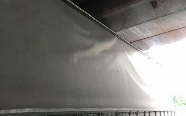 Водитель не рассчитал габариты своего грузовика и не смог проехать под путепроводом