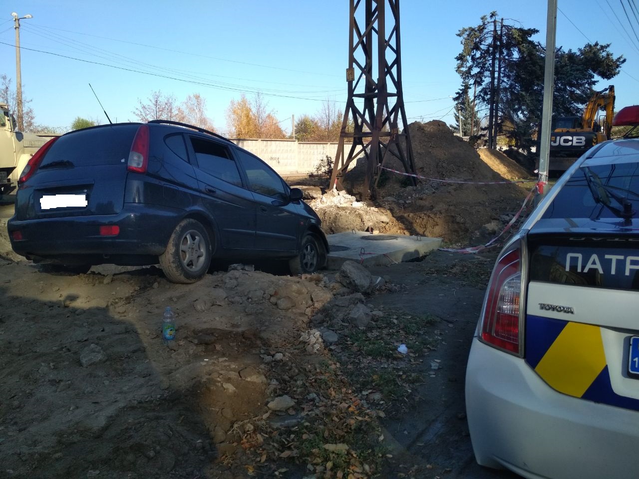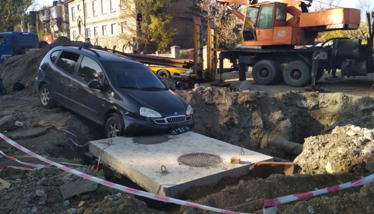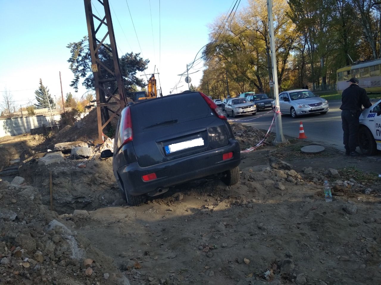 Сегодня в Запорожье в Шевченковском районе легковой автомобиль влетел в бетонный люк.